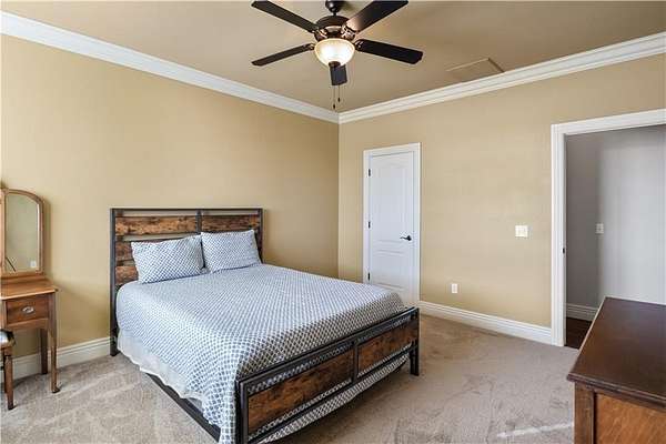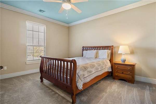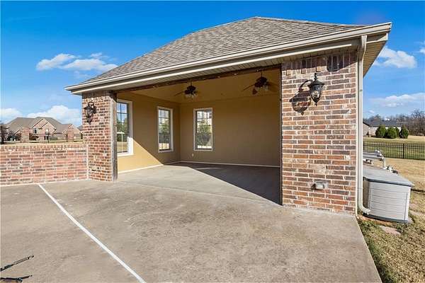 From Hwy 112 in Elm Springs, turn East on Water Ave which turns into Brush Creek Rd. Turn left into Churchill Downs Subdivision's gated entrance. Home is near end of the street on the right.
