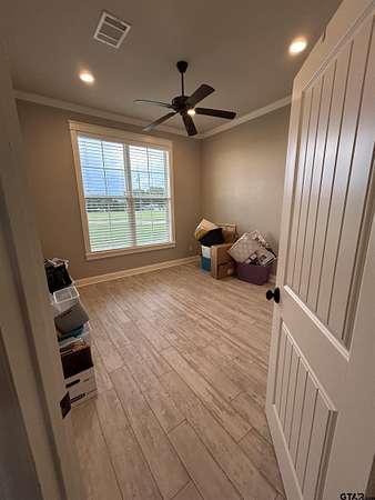 - Blinds, Ceiling Fan, Smoke Alarm, Vaulted Ceilings