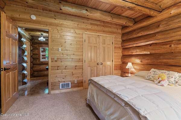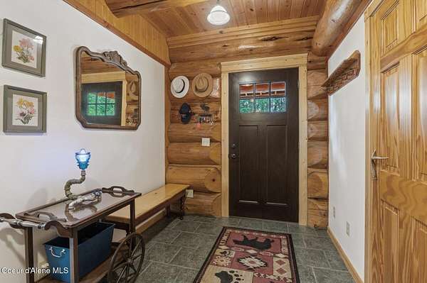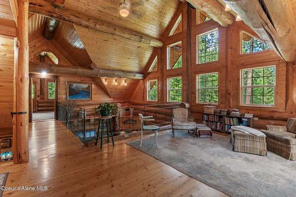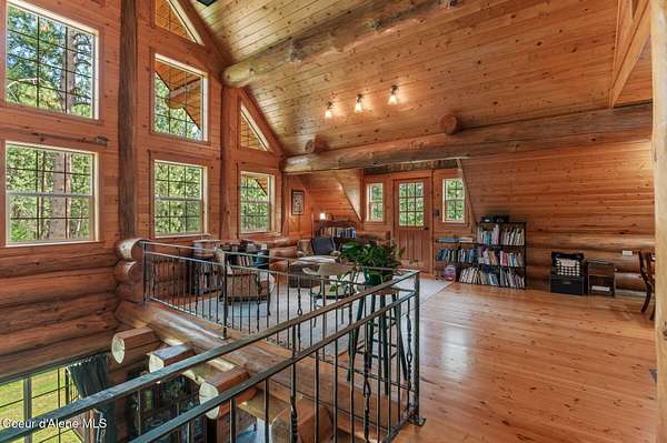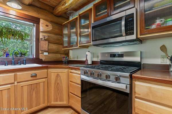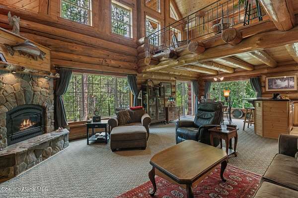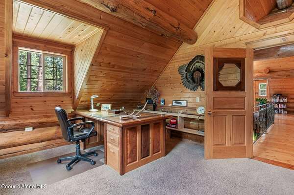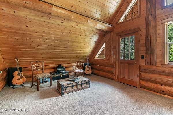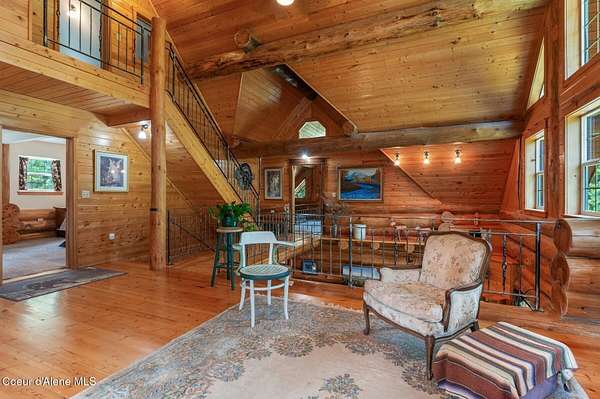 Built with exceptional attention to traditional craftsmanship this home showcases full scribe Swedish cope log construction-one of the most revered and traditional log-building methods. Each log is individually scribed and interlocked, offering unmatched structural integrity, energy efficiency, and timeless elegance. Designed to last generations, this immaculate home offers four bedrooms, a spacious office with a private deck and a top-floor playroom (both of which could be converted to additional bedrooms if desired). There's also a fantastic towering great room with a wall of windows and deck overlooking the forest. In the kitchen you will find full Mahogany countertops and newer SS appliances. There's a separate MIL apartment with a private entrance. Enjoy three living areas, two fireplaces, three decks, two shops, a garden area, and a beautiful old-growth forest with a seasonal creek and pond-all in complete privacy just moments from downtown.