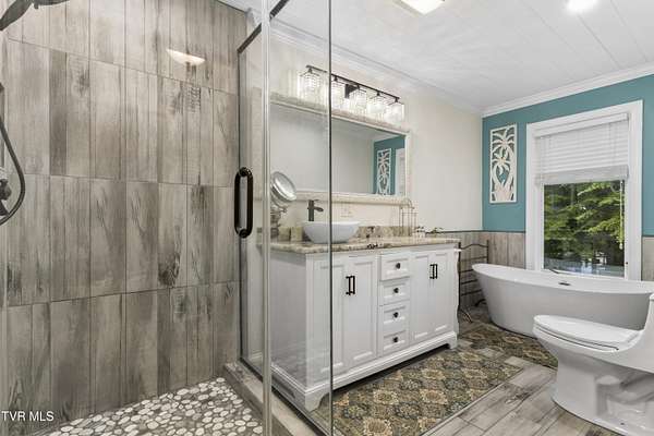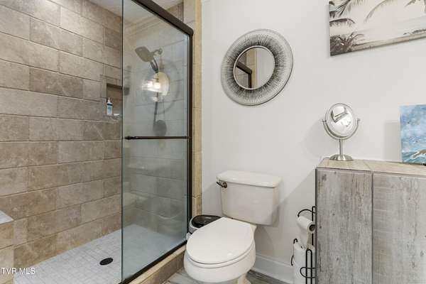 Tucked away on a large secluded lot, this stunning 4-bedroom, 5-1/2 bath contemporary home offers the perfect blend of privacy and convenience-just moments from Emory & Henry University. Each bedroom features its own private full bath, with a freshly remodeled master suite boasting a rare ''his and her'' bathroom setup, providing each their own bathroom and a laundry hookup! Inside, you'll find hardwood and tile flooring throughout, paired with granite countertops and a chef-inspired kitchen complete with a large island-ideal for both cooking and entertaining. There are two separate driveways that access both the main level and the basement, along with laundry hookups on each floor and abundant storage space, making it live-able on both levels. out back you have a screened-in porch to relax or host guests on the expansive open back deck-perfect for grilling out and enjoying nature. Additionally there is a huge, fenced lot for your dogs that has plenty of mature trees providing shade and space to run. This home checks all the boxes, come see it for yourself!