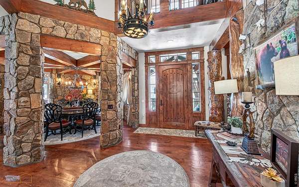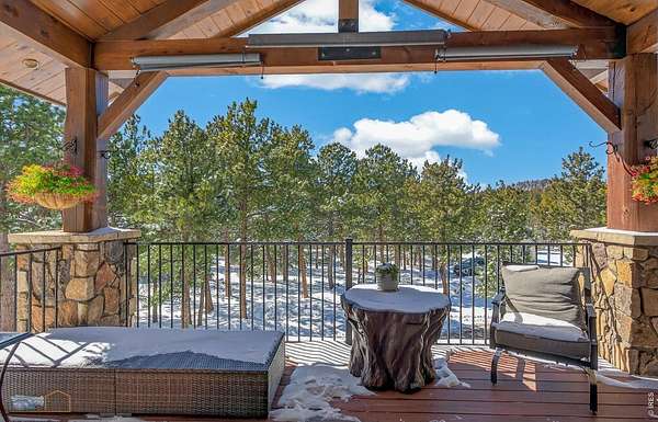 This is the very reason people choose to call Colorado home. A true embodiment of mountain living at its finest, this extraordinary residence showcases exceptional craftsmanship and meticulous attention to detail at every turn. From the moment you step through the front door, the home makes a lasting impression. Wide-plank wood floors, striking stone pillars, and beautifully hand-scraped timber accents create a warm yet sophisticated mountain aesthetic that immediately captures your attention. Every space reflects both elegance and comfort, blending rustic charm with refined design. The thoughtfully designed kitchen offers everything needed for effortless living and entertaining. Knotty alder cabinetry, dual dishwashers, two granite sinks, double ovens, and a built-in Sub-Zero refrigerator provide both style and functionality, while the inviting eat-in area creates the perfect place to gather. The living room and family room are generously sized and designed for relaxation, each featuring a cozy fireplace and expansive windows that frame the breathtaking natural surroundings. The luxurious primary suite offers a private retreat complete with its own fireplace, a spacious walk-in closet, and direct access to the deck - perfect for enjoying crisp mountain mornings and peaceful evenings. Upstairs, two additional bedrooms and a stylish media room provide flexible space for guests, family, or entertainment. Three of the bathrooms are thoughtfully appointed with a steam shower and one has a whirlpool tub, creating a spa-like experience throughout the home. Pella windows enhance both the beauty and energy efficiency of the property. Outside, a large wrap-around deck with a new roll-out canopy invites you to fully embrace the stunning mountain setting. Conveniently located just 30 minutes from Boulder, Golden, and Eldora Mountain Ski Resort, and only one hour from Denver International Airport, this mountain home offers the perfect balance of tranquility and accessibility.