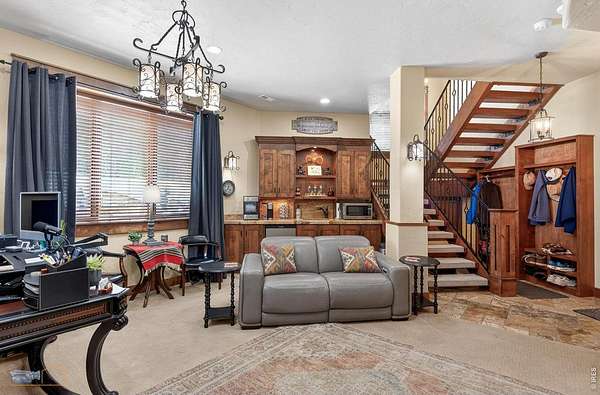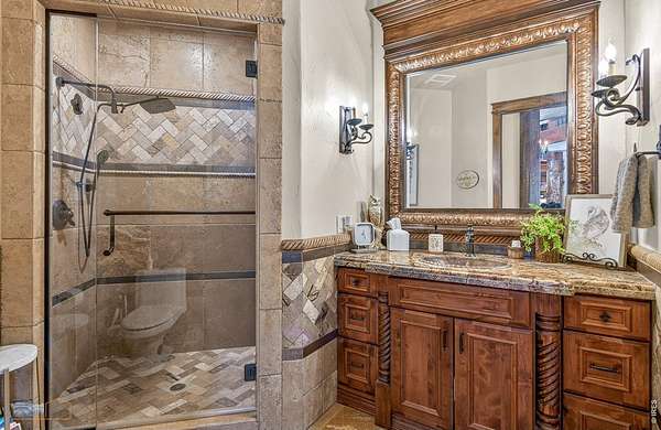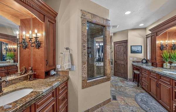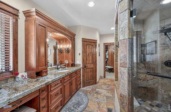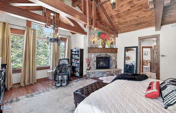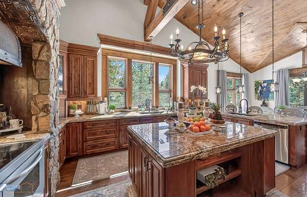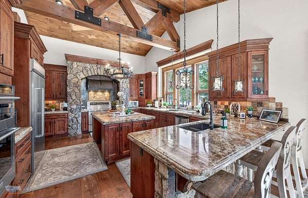 - Cathedral Ceiling(s), Eat-In Kitchen, High Ceilings, Jack & Jill Bathroom, Kitchen Island, Natural Woodwork, Open Floorplan, Pantry, Separate Dining Room, Steam Shower, Walk-In Closet(s), Wet Bar, Wood Windows
