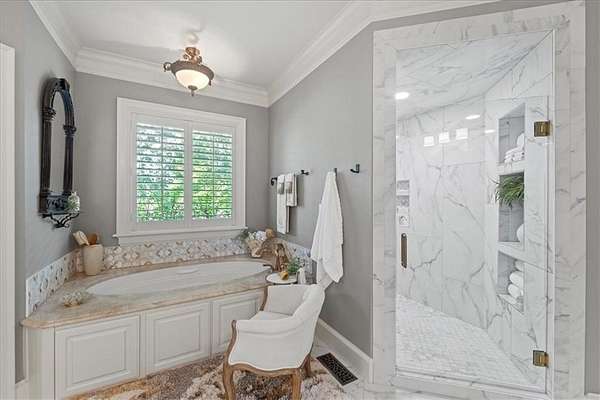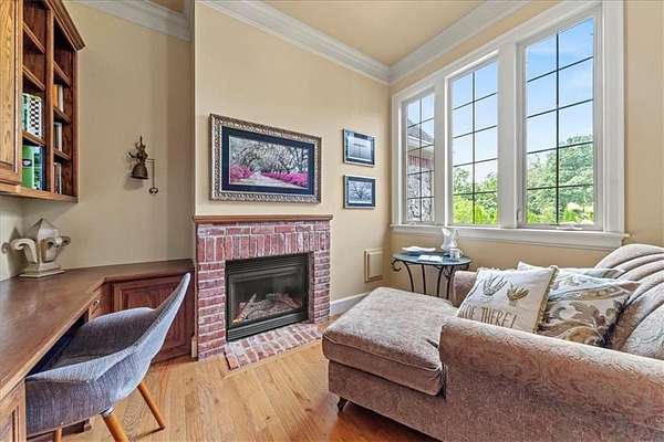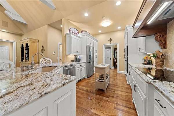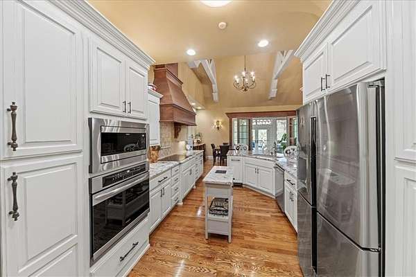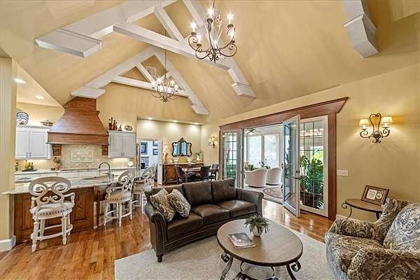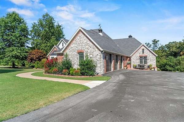 Custom luxury estate on 10.22+- acres in the Bentonville School District. This one-level, 3,917 sq. ft. residence plus 710 sq. ft. bonus apartment offers timeless craftsmanship, authentic hardwood flooring, cathedral ceilings with exposed beams, and three fireplaces. The renovated primary suite features vaulted ceilings, wood accents, bay window, oversized walk-in closet with custom built-ins, and a spa-like bath with heated floors and MicroSilk tub. Open living areas include a sunroom with UV-tinted windows, library, and gourmet kitchen with Bosch & Samsung appliances. Outdoor living shines with a gunite pool, waterfall, tanning shelf, and lush landscaping. Additional highlights: 3-car garage, smart home features, two Generac whole-house generators, sound system, and extensive storage. A new 2,000 sq. ft. steel shop includes a guest apartment with full kitchen and bath. Privacy, convenience, and resort-style amenities minutes from schools and bypass.