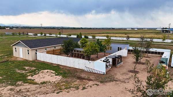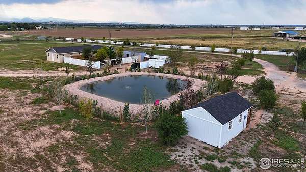 Set on nearly 9.5 acres in Platteville, this property offers room to live, work, and enjoy the outdoors. A 5,000 sq ft shop with epoxy coated floors, suspended heating units, six chandeliers, and a built in bar is ideal for a business setup, hobbies, storage, or gatherings. Just off the home is a 1/4 acre pond, approximately 8 feet deep, that is stocked with fish, lined with river rock, aerated, and fully fenced. Nearby, a finished She Shed offers flexible space for a retreat, studio, or workspace. The grounds include more than 100 fruit and flowering trees with drip irrigation, plus multiple chicken coops, a fenced animal pasture of about 0.62 acres, and several outbuildings with electric for livestock, equipment, or projects. A 15 GPM well provides capacity for two single family homes, creating the option to build a second residence on the property. Inside, the home has been thoughtfully updated with new hardwood flooring, windows, doors, drywall, updated electrical, central A/C, and a tankless water heater. The kitchen features quartz countertops, custom cabinetry, and KitchenAid appliances. Step outside to the covered patio with a vaulted ceiling, fireplace, and tile floors for comfortable use in every season. Schedule your showing today to see how this property can fit your lifestyle!