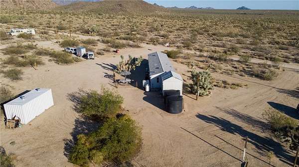 Check out this great get away! Now with large down ask about the owner carry terms * Would be a great snowbird retreat or full time residence * Amazing MTN views & set in the Wabayuma Peak Wilderness so the Desert beauty surrounds you * This well kept 3 Bedroom 2 Full Bath home is clean, move in ready & waiting for its new owners * There are over 6,500 acres of federal land for you to explore * 2.06 acre corner lot has the home, Conex container for storage plus a storage shed/workshop give you plenty of room to work in * 2 2400 Gallon water storage tanks and water delivery service available plus a 250 gallon water tote if you want to get your own * SS Frig stays * Nice fenced back/side yard * Fenced backyard to keep the critters out and your pets in * Nice patio area off the back that's shaded in the hot part of the day * Take off in all directions to explore forever * Short drive to Kingman, Havasu or Over to Bullhead and 1 1/2 hr trip to Las Vegas * Gas station with shopping and food places right around the corner!