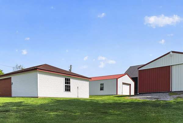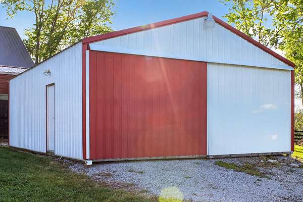 1199 Fort Bramlett Road: A nature lover's dream. Located near the Kentucky river along a path once traversed by Daniel Boone, this 14.32 +/- acre property features peace and tranquility with partially-wooded acreage, creek access, partially-fenced pasture land, three 24' x 30' buildings, and a beautifully updated 2540 square foot home. The three-bedroom, two and one-half bath home features 9" engineered English oak hardwood floors, new kitchen appliances, updated cabinets and hardware, new roof, new windows, new doors, new insulation, updated lighting, and fresh paint throughout. With three additional 24' x 30' buildings, your storage, workshop, or hobby options are endless. The first building includes radiant heat and 220V outlet. The second building has a separate electric meter, insulation with a metal lining, and 14' garage door. The third building could easily be outfitted with horse stalls or used for equipment storage. An outdoor water spigot is conveniently located near all three buildings. In addition to the two car attached garage, and three buildings, you'll find an RV carport and 10' x 12' tool shed. Do not hesitate to schedule your opportunity to tour this unique and pristine homestead.