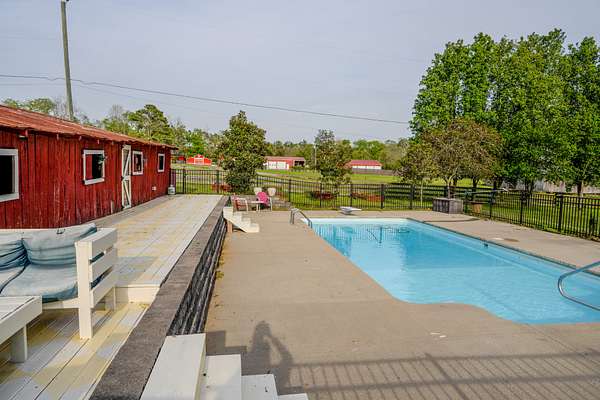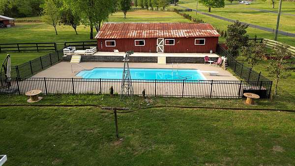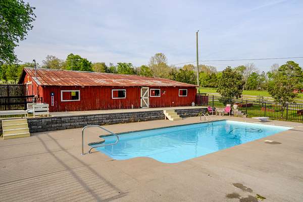Step outside to your private backyard retreat featuring an in-ground pool, perfect for relaxing or entertaining in a peaceful setting. Huge barn with direct walkout to the pool. Perfect for pool parties. The pool even has direct access to a bathroom without entering the home. With its layout, acreage, & versatility. Perfect for entertaining.