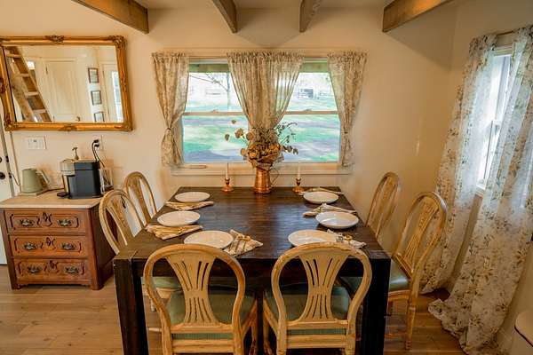 Perfect for horse lovers or those seeking room to spread out, the property includes multiple barns, open pasture, and functional fencing ideal for livestock or recreation. A 525 sq ft detached tiny house, (listed on the tax record as a "special residential unit"), offers its own bath, kitchenette, & it's own septic system—Giving the new owner tons of entertaining options.