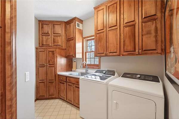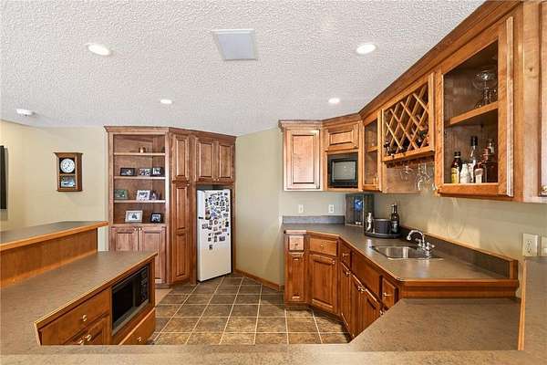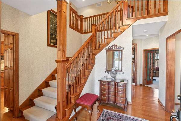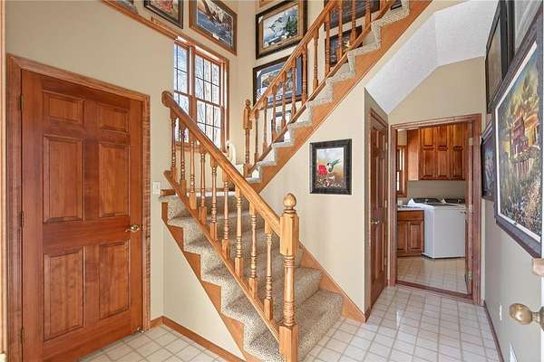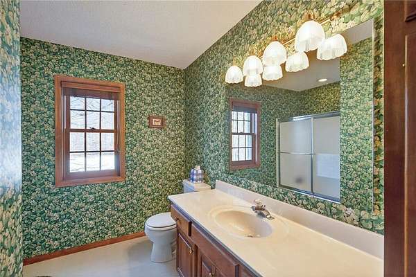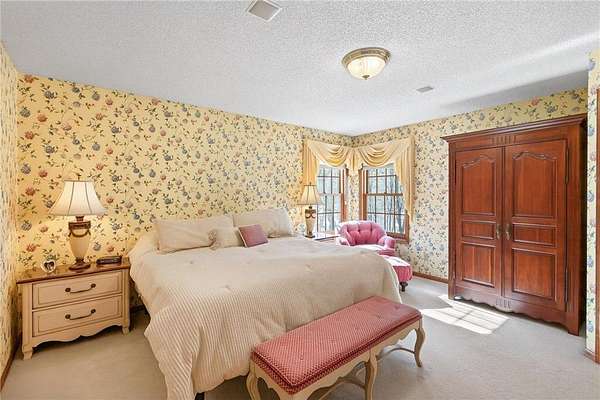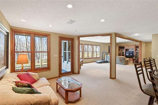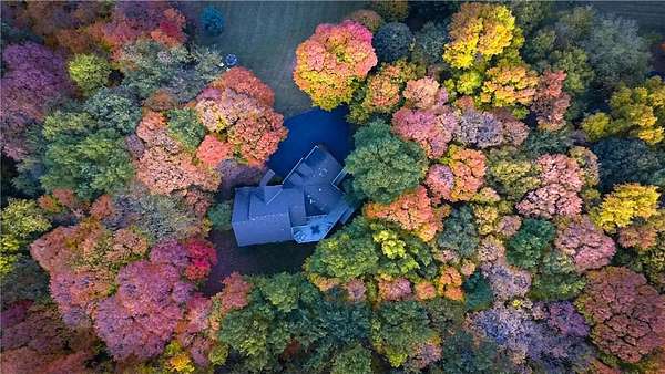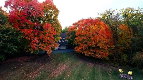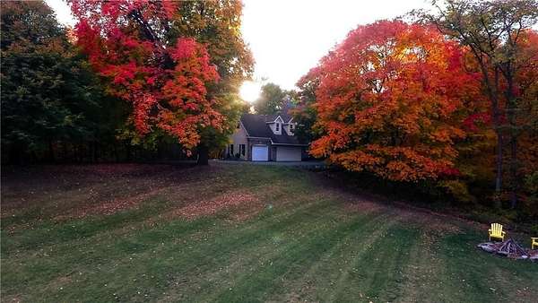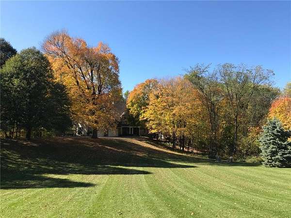 Stunning Executive, custom-built, one-owner home is nestled on 3.5 beautifully landscaped private wooded acres, offering the perfect blend of luxury, comfort, and privacy! The beautifully appointed kitchen features granite countertops, custom raised-panel birch cabinetry, tile backsplash, flowing seamlessly into both the informal and spacious great room. Enjoy both informal and formal dining areas- ideal for entertaining or everyday living. The main floor great room is filled with natural light from expansive windows overlooking the wooded backyard and features a built-in entertainment center. The formal dining room offers multiple options with a lovely vaulted ceiling. A main floor bedroom or office w/ glass French doors, window seat and a custom bookcase offer flexible living space. The main floor laundry includes access to a private upper level office, studio (currently an art studio where the well known artist, Jim Hansel, spent many hours crafting his next masterpiece), guest/teen suite, bonus room. Upstairs are 3 bedrooms, including a spacious primary suite with a full ensuite bath featuring a jetted tub, separate tiled shower and an X-large walk-in closet! The finished Walkout lower level is designed for entertaining with a large gathering area, wet bar w/ lots of seating, rec room perfect for pool table/game tables, spacious family room w/ built-in entertainment center, the 5th bedroom, full bath w/ tiled floors & ample storage! Outside, enjoy the privacy of the mature trees plus a storage shed w/ power - perfect for extra storage, hobbies complete with a fenced in area for the pet.