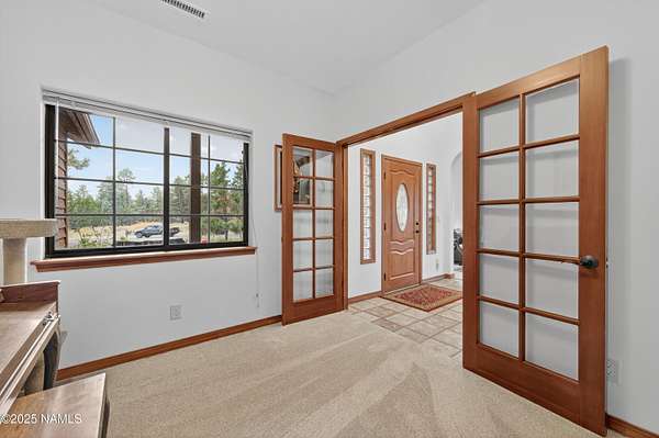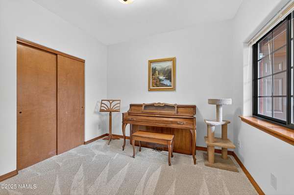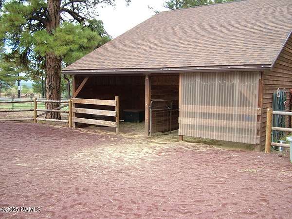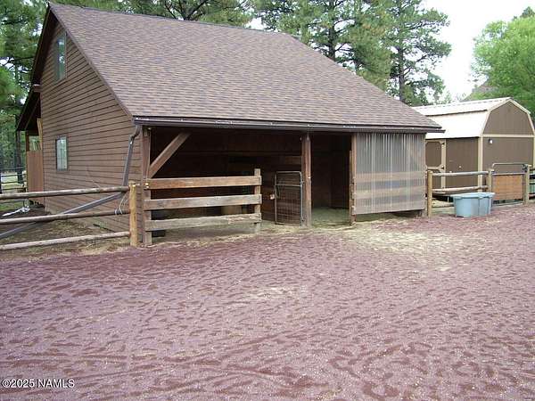 FABULOUS HORSE PROPERTY IN THE PINES with direct access to the Coconino National Forest. This beautiful home has 5 bedrooms, 3 1/2 baths with the primary suite on the main floor. A bonus music/office room is just off the entry. The 2 1/4 acre property features a 9x10 greenhouse, fenced gopher proof garden, and a large fenced yard for the dogs. A/C plus new interior paint and new carpeting plus a high efficiency Blaze King wood stove with split and stacked wood make this home move-in ready for you and your family. A 2 stall barn with water, electricity and large turn out make this a perfect horse set-up. Saddle up and ride all the way to the Grand Canyon. The barn features a heated, insulated 19x23 workshop with a storage attic above. AND NO HOA.
