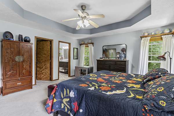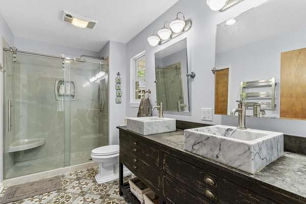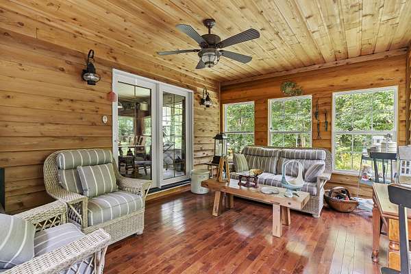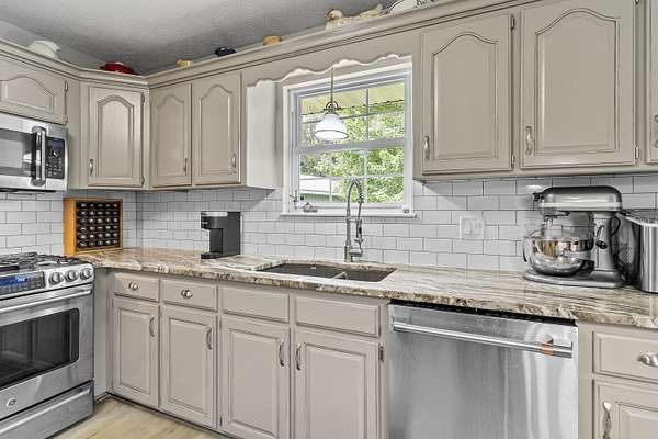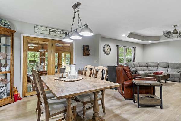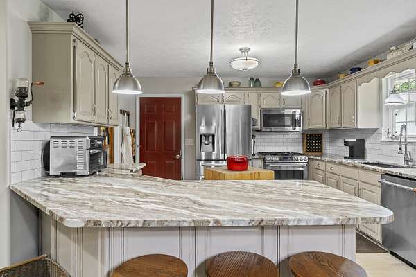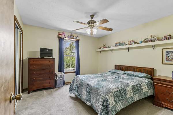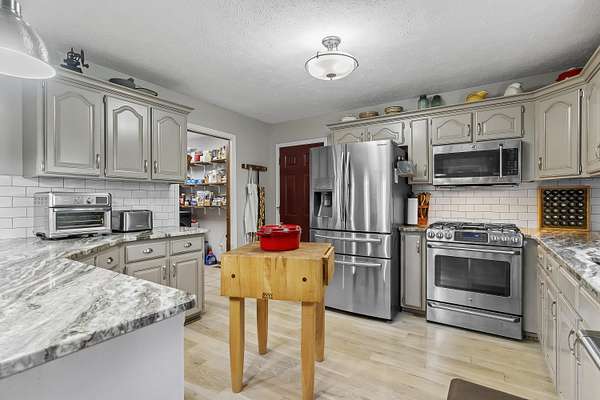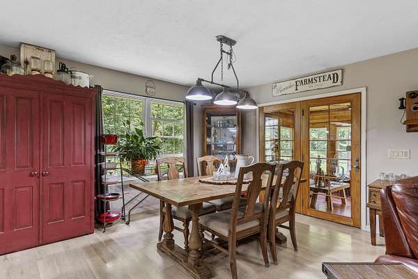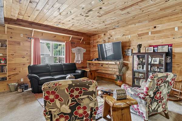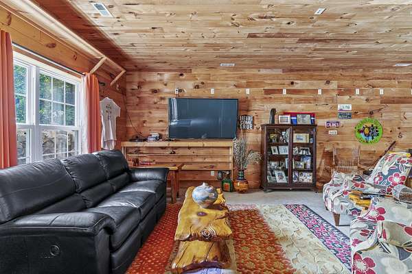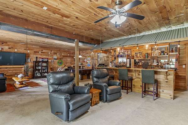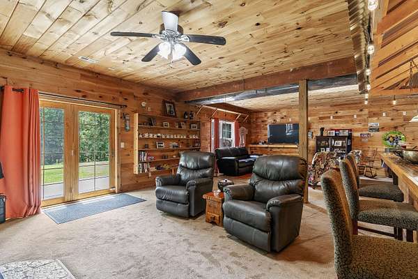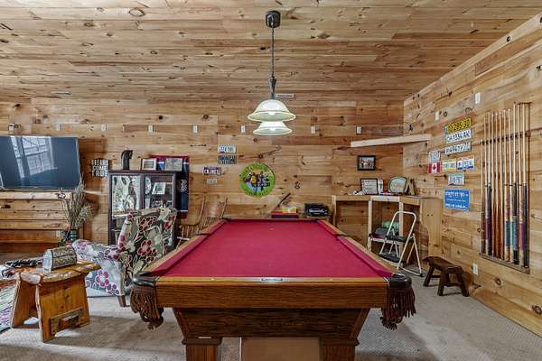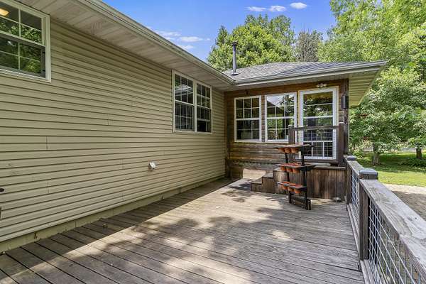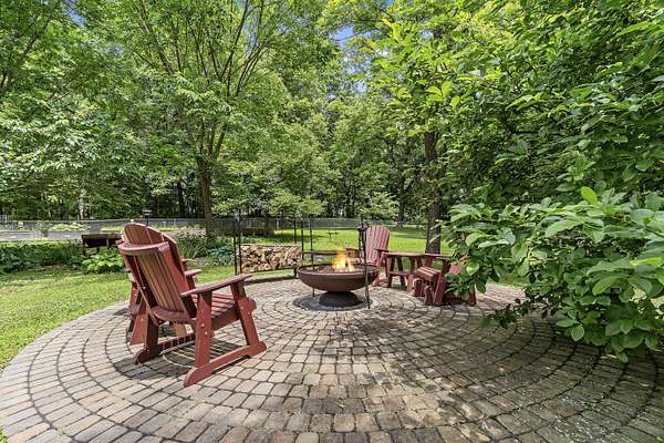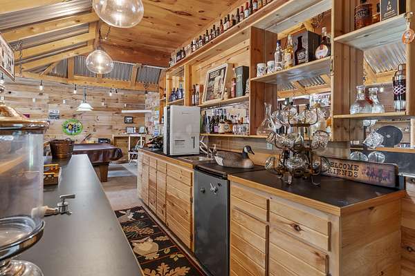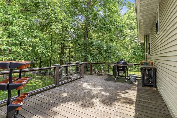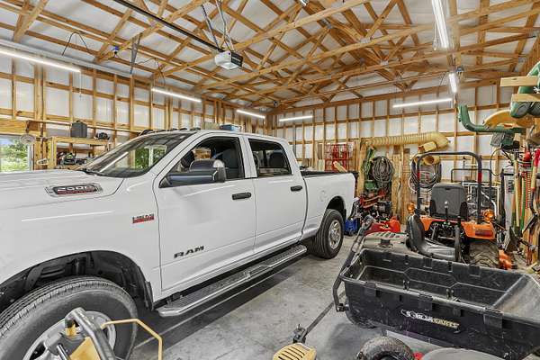 Nestled in a serene, park-like setting, this impressive 5-acre property features a spacious 3,636 sq ft walk-out basement home, a newer 24' x 32' shop equipped with 220V electric and concrete floors, plus another storage building. The main level of the home offers 3 bedrooms and 2.5 bathrooms, including a convenient main-level laundry room. The kitchen has been tastefully updated with new countertops, backsplash, sink, and modern appliances--including a microwave that doubles as a convection oven and an upgraded gas stove. The eating area extends into a sunroom, providing scenic views of the beautifully landscaped backyard. Downstairs, the fully finished basement boasts a wet bar, an additional bedroom and full bath, a spacious living room, and an extra room ideal for a gym, office, or storage. Stay cozy and energy-efficient in winter with a pellet stove on the main floor and a wood stove in the basement. To get you started, the seller is leaving 2 tons of pellets. This property is packed with extras including an RV gravel pad with a dedicated electrical receptacle, a generator disconnect, and a large, welcoming front porch upgraded with TimberTech composite decking. More outdoor features include a covered foot bridge crossing the wet-weather creek, a greenhouse, a pergola-covered patio, and well-maintained garden areas with large metal plant holders. Whether you're looking for inside comfort, or outdoor charm, this property really has it all!