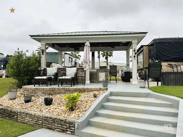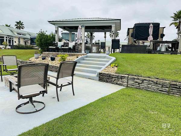 Discover the ultimate in luxury motorcoach living with this waterfront RV lot on The Point one of the most sought-after peninsulas in Lake Osprey RV Resort. This deeded property features a covered 12x18 outdoor kitchen complete with a gas grill and burner, refrigerator, ice maker, stainless sink, granite countertops, and ample storage. The spacious counter area offers plenty of room for meal prep, buffet service, and barstool seating. Relax and entertain with breathtaking lake views, a private gas fire pit, multiple seating and dining areas, built-in umbrella holders, and lush tropical landscaping. Bring your motorhome or, build a luxury home as a full-time retreat, seasonal escape, or income-producing rental; this exceptional property truly has it all. You can live full time in RV or build up to a 1200 sf home on the lot. Community restrictions will apply for RV year, class, and size. Enjoy access to top-tier community features such as: an Elegant clubhouse with a full kitchen and social areas (recently remodeled) Infinity-edge pool & hot tub, a State-of-the-art fitness center, laundry facilities, courts, putting green & tiki bar, dog park with washing station Grilling areas and walking trails, and lake access for paddleboarding and kayaking This is a deeded property within a true luxury subdivision. HOA dues are $320/month and include water, sewer, trash, cable TV, internet, and lawncare -- offering both comfort and convenience. Prime Location Just minutes from the beautiful Gulf Coast beaches, top-rated golf courses, shopping, dining, and three airports, Lake Osprey offers a perfect blend of luxury, leisure, and accessibility. Buyer to verify all information during due diligence.