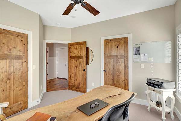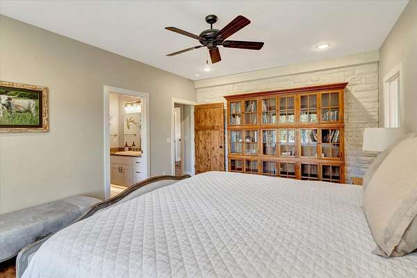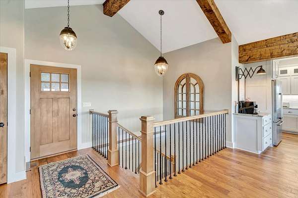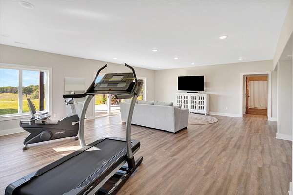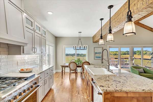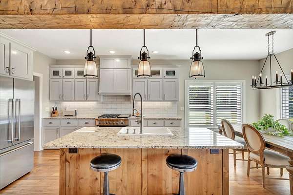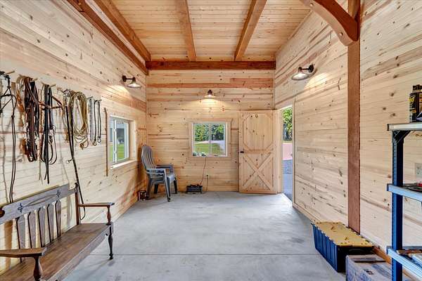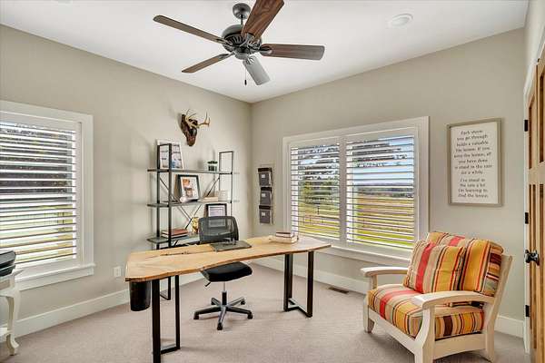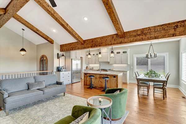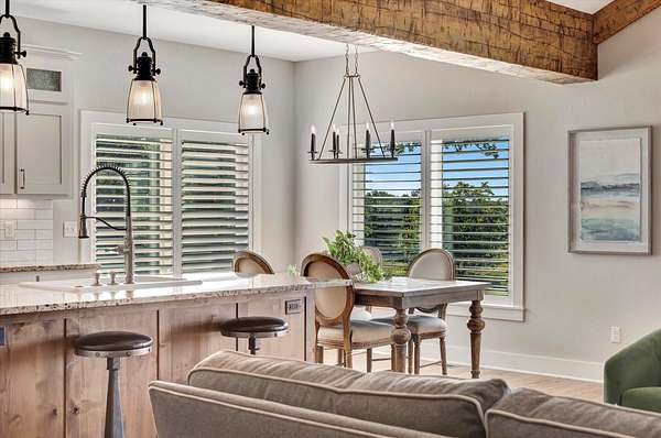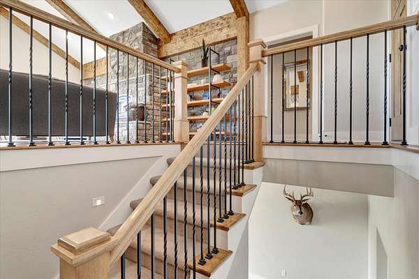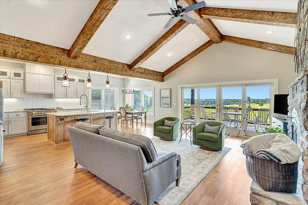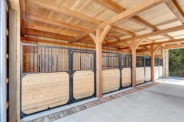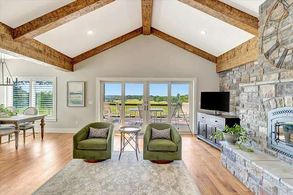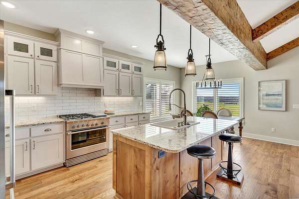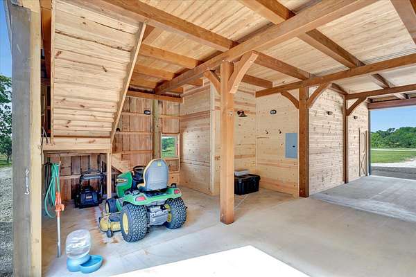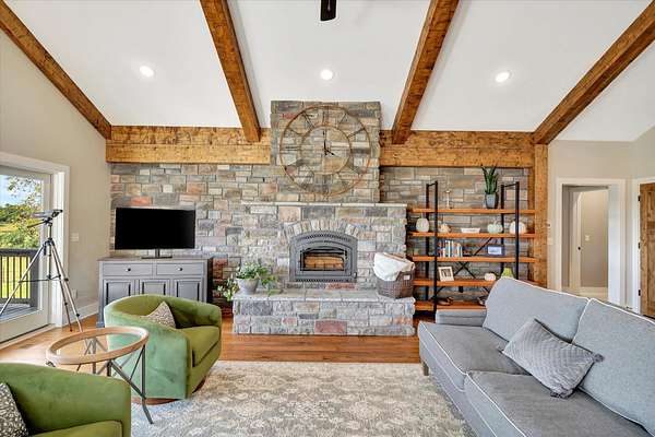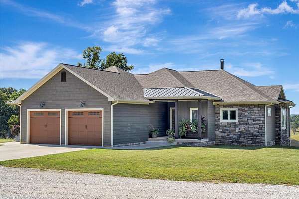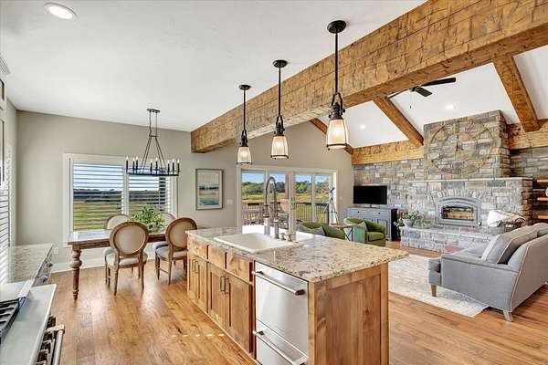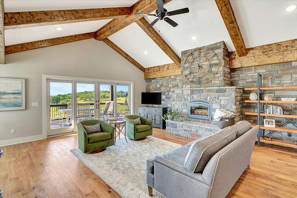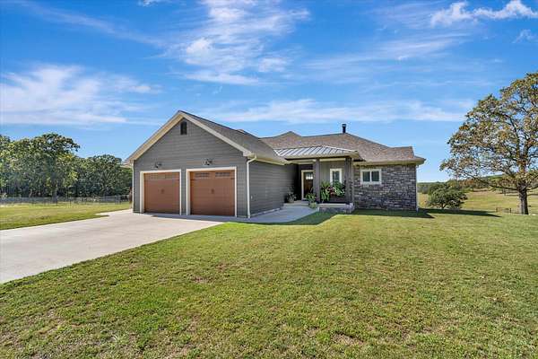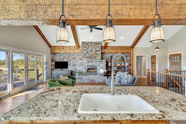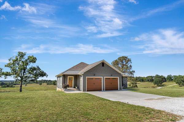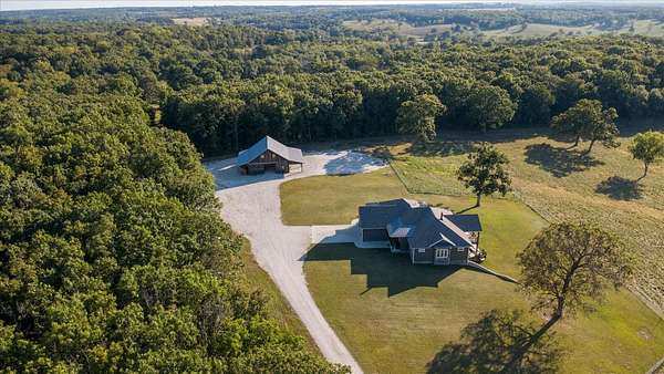 Set back from the road just off Highway 32, this property makes an immediate impression. A long, winding drive leads to a home positioned perfectly for privacy and sunsets every view from the main level or lower level captures the landscape in full.Built with exceptional quality, the home features exposed wood beams, a grand stone fireplace, and walls of windows that fill the space with natural light. The open floor plan connects the living, dining, and kitchen areas, creating a space that feels expansive, balanced, and refined.The primary suite includes his and hers baths and closets hers with a soaking tub and his with a walk-in shower. Every finish reflects thoughtful craftsmanship and solid construction from top to bottom.The lower level adds additional living space, bedrooms, and a workshop area, maintaining the same level of quality and detail as above.One of the standout features of the property is the horse barn a custom-built structure with a cypress exterior and cedar and fir finishes inside. It includes three stalls, a tack room that could double as a lounge, a half bath, and a loft for storage. It's exceptionally well done and adds tremendous appeal to the property.The acreage is fully fenced with a gentle roll, ready for livestock, offering a balanced mix of pasture and timber with a pond and automatic waterer.Located less than ten minutes from Stockton Lake, this property delivers on every level privacy, craftsmanship, and design that set it apart from anything else on the market.