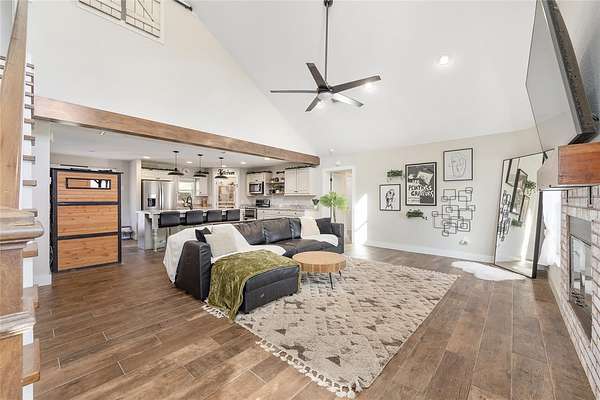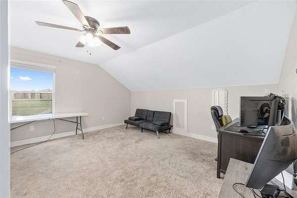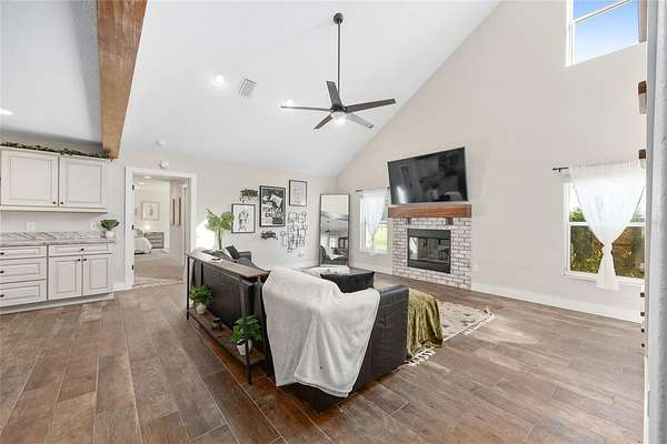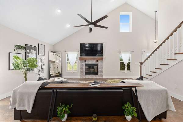 - Cathedral Ceiling(s), Ceiling Fans(s), Eat-In Kitchen, High Ceilings, Open Floorplan, Primary Bedroom Main Floor, Solid Wood Cabinets, Split Bedroom, Walk-In Closet(s), Window Treatments