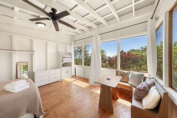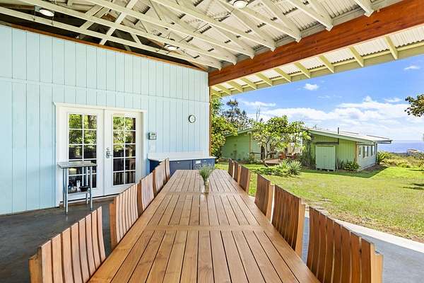 Sundari Wellness Gardens and Campus is a 5-acre sanctuary created for health and wellness. This property is offered for sale on its own ($1,200,000), or together with MLS 721043 , the Sundari Spa (listed for $1,800,000), or both properties together, for $3,600,000. This property features the following: "Sun Lodge": A 4-bedroom, 2-bath house with a massive covered lanai facing the ocean. "Rainbow Room": This building was constructed from 7 modified shipping containers. The ground floor showcases an expansive open-air 1,600 sq ft hardwood dance floor, plus bathrooms, showers, a laundry area, and 800 sq ft of dry storage. The upper floor is home to 4 private bedrooms, a kitchen, living room, dining room, and a sunroom. The "Sky Kitchen": Located behind the Sun Lodge, the separate kitchen is set up to prepare delicious meals for large groups. It is also home to an extra-large food and storage pantry and a 14-person dining area. The "Moon Cabin": A fabulous private lodge tucked amidst lush foliage, an indoor/outdoor kitchen/living/dining area arranged to take in beautiful ocean views. The spacious bedroom features a large walk-in closet and a spa-like bathroom with a luxurious, polished lava-rock soaking tub. The "Guest Cabin" is an inviting, open, and bright studio space with a kitchenette set amidst the privacy of gardens. The Barn/Classroom: Offers plenty of farm storage plus a classroom for agriculturally geared classes, at the foot of the fenced vegetable and herb gardens. Greenhouse: Ready for production! Enjoy the .5 mile walking trail through an Ohia forest and gardens, multiple meditation ponds, statues, medicinal gardens, a fire pit, and many glamping sites. All this with 180-degree ocean views! Off-grid: water catchment, a well, solar power, and wifii or satellite internet. Sundari is close to Pahoa, and activities along the famous "Red Road", a beautiful coastal roadway.