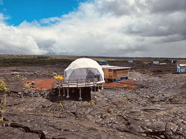 Est $1,928/mo15,000 sq ft of Paradise! A unique combination of a Geodesic Dome, 40 foot Container and a wooden cabin structure creating the most fantastic living spaces at eclectic Kalapana Vacation Lots. Built upon 2 adjoining 7,500 sq ft lots 3-1-2-12-127 and 128.