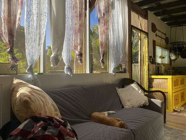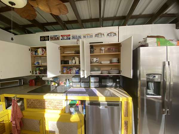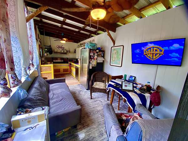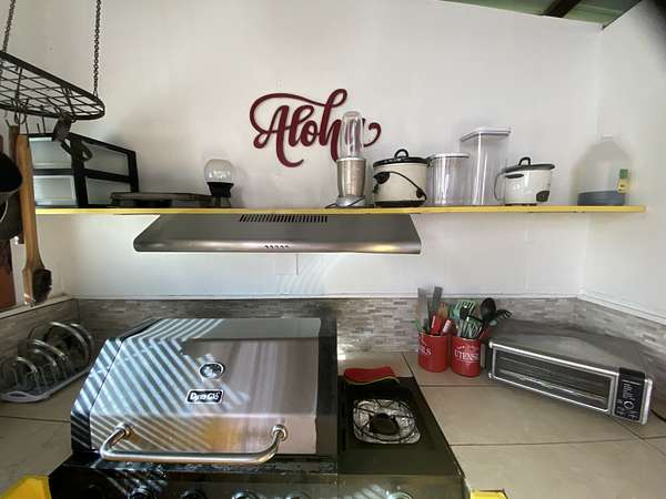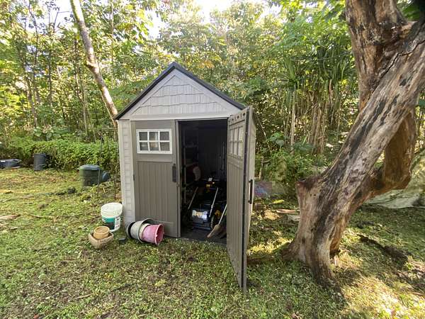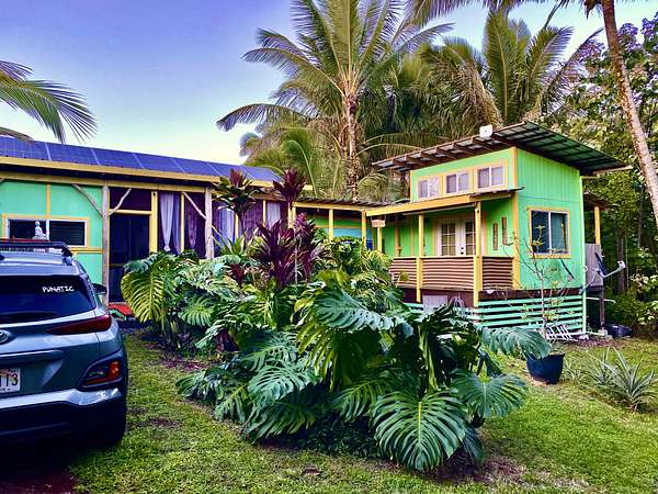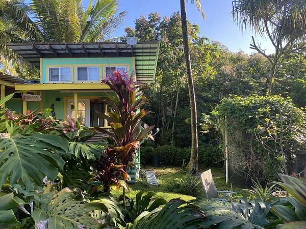 Beautiful Oceanside Seaview Estates residence. Go to Kehena Black Sands Beach daily to swim at sunrise. Beautifully landscaped lot to provide privacy on a dead end paved street and is completely fenced. This could be your property to leave it all behind, as it is fully furnished! Fully equipped kitchen with double sink, dishwasher and newer refrigerator/freezer of 21 cubic feet capacity with dining area that connects to the main, double wall cabin bedroom that is 12' by 10'.There is a 65 sq. bathroom with shower, vanity and toilet that is served by a cesspool. 2 covered lanais on the main cabin. A loft for storage or another bed, is in the other cabin that is 1 & 1/2 stories. There is a nice screened Cabana of 144 square feet for your visitors who come in awe of Paradise. Coconut's, papayas, lilikoi, avocados and pineapples! An Outback solar system with 8 solar panels and 8 Northstar batteries provide the energy you need. (grid electricity, phone, and fiber optic internet is available overhead on the street) A 4,000 gallon poly tank and water filtration system has provided lots of fresh drinkable water needed. A storage shed contains, battery and gas lawn mowers, weed eaters, blowers, etc. Kalapana Seaview Estates Community Association is a small subdivision located along the southeast side of the Big Island. HOA fees are $100 per year for its three parks. The roads are all paved and maintained by the county. The quaint town of Pahoa is 20 minutes away. The area is rural with lowland rainforests. Within 45 minutes to Hilo, a small city which provides a typical metropolitan community of services. The property is located and Lava Zone 2 and requires a Cash Buyer. The Big Island is the last area of Hawaii that is affordable. Don't miss this opportunity to live in Paradise.