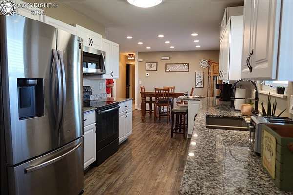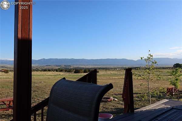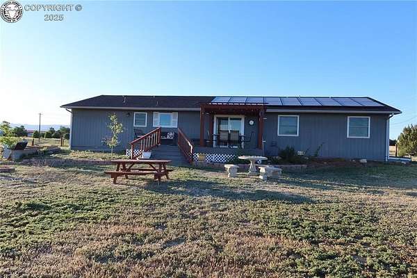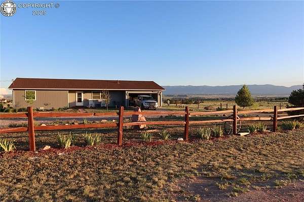 This beauty has so much to offer!! 3 bed 2 bath rancher with attached 2 car garage (new door & opener) and brand new interior paint. Sitting on 4.12 acres of some of the best mountain views money can buy! Pikes Peak, Sangre De Cristo's, the Front Range, and Greenhorns! Breakfast bar, granite counter tops, newer cabinets, appliances, paint, windows, fans & fixtures, recessed lighting, furnace, central air, 7 year old roof and the best part.. SOLAR that will be paid for at closing with an acceptable offer. There is a huge deck on back with a pergola which is the perfect place to to enjoy the peace and tranquility this property is loved for. There are also hammock poles for those much needed naps! The shed has a loft on both ends with an enclosed pole barn on the side, chicken coop, garden area and plenty of flowers such as columbines (yellow, white, & purple), roses, lilies, rose of Sharon bushes, iris's, apple and plum trees, raspberry bush, aspens, and plenty of additional space to plant till your heart is content!