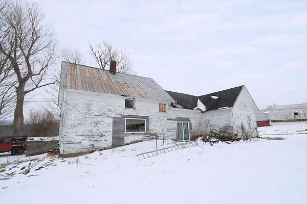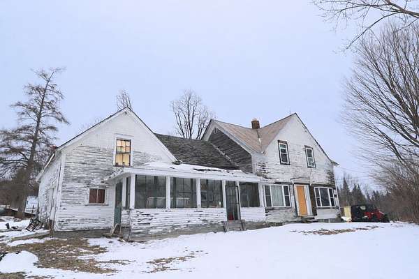 4-bedroom, 2-bath farmhouse situated on a 6.1 acre corner lot with private septic, power, and deeded rights to a neighboring spring. This home offers over 1,500 sq ft of living space and features a newly installed on-demand hot water system, along with a three-season porch and attached garage/workshop. The property is in need of rehab but offers strong potential as a primary residence, rental, or investment project. Also on site is a 20' x 38' partially completed kit home on a slab foundation (post and beam framing materials supplied by Jamaica Cottage Shop, located in Londonderry, VT. Features radiant heat (not connected), a buried cistern, loft, large east-facing windows, and a corrugated metal roof. Approximately 50% complete and ready for finishing. This property is being offered as-is; potential for financing via conventional or rehab loans.