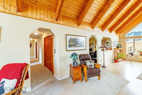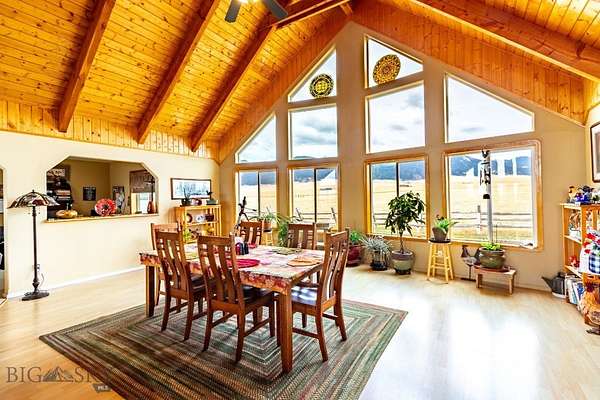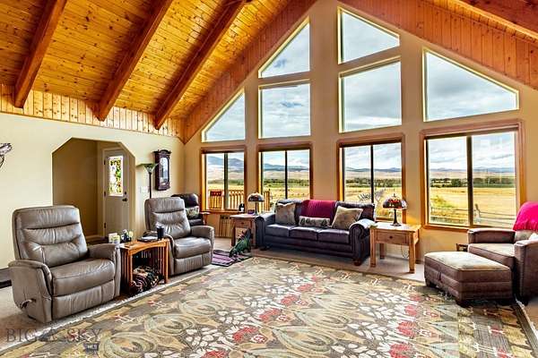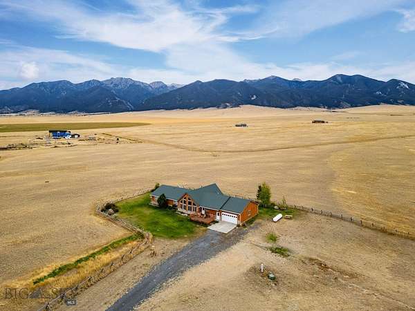 Welcome to your Montana dream property-where sweeping mountain views, open skies, and 45 acres of privacy create a lifestyle that feels worlds away yet minutes from town. This custom 3-bed, 2.5-bath home offers 2,858 sq ft of rustic elegance, blending craftsmanship, comfort, and freedom. 20-foot vaulted knotty-pine ceilings, hardwood finishes, and picture windows frame the Tobacco Root Mountains. The open-concept great room flows into a chef's kitchen with stainless steel appliances, custom cabinetry, and an island made for gatherings. The primary suite includes deck access, a spa-style bath, and a walk-in closet. Outside, enjoy partially fenced and cross-fenced land, a shop, and room for horses or hobbies. Watch sunrise and sunset from the front deck or explore nearby trails and town. Convenient to Bozeman, Butte, and Helena-this is true Montana living.