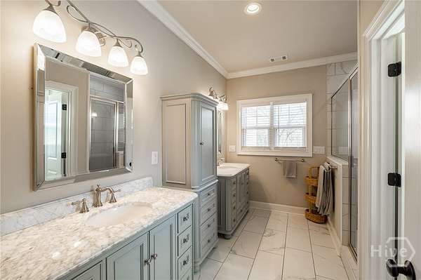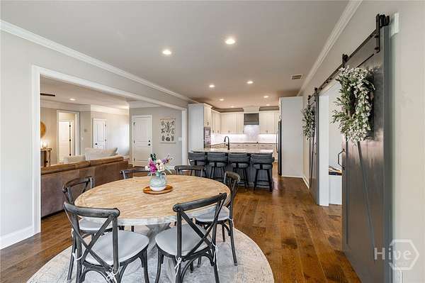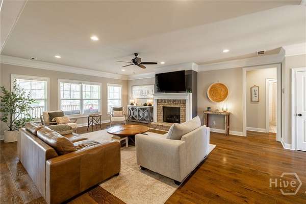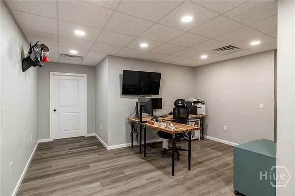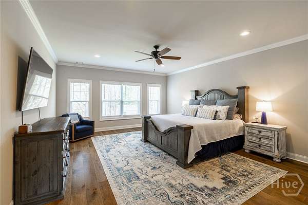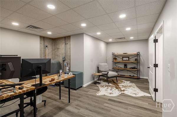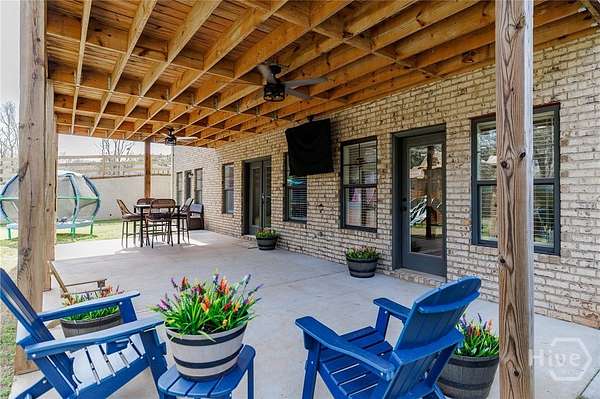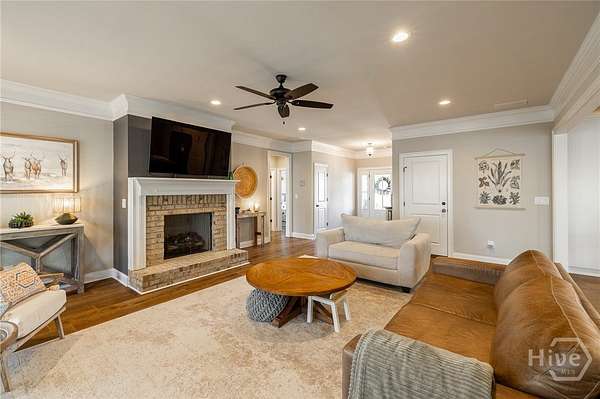 Set on nearly five acres with a shared pond behind the home, this custom property in Hawks Landing was built in 2019 and offers a peaceful setting just minutes from Athens. Thoughtfully designed for everyday living and gathering, the main level features open living spaces with wide plank engineered hardwood floors and a brick surround fireplace anchoring the living room. A spacious dining area easily accommodates a full table and connects seamlessly to the kitchen. The kitchen includes custom cabinetry, generous workspace, a center island, walk-in pantry with custom shelving, convection microwave, separate cooktop, and wall oven. The laundry room adds additional functionality with built-in storage. The primary suite is privately positioned on one side of the home and includes two separate closets and a spacious bath. A secondary bedroom is located on the same side of the home, while an additional flex room on the main level can function as a bedroom, den, or office depending on your needs. The finished lower level offers generous natural light through large windows and expands the living space with a large media or recreation room, bedroom, full bath, and private office. A heated and cooled workshop, along with additional unfinished storage space, provides room for projects, hobbies, and organization. The lower level opens to a full covered patio that runs along the back of the home. Outdoor living is just as inviting, with a covered back porch overlooking the yard and pond. The pond is privately shared with one neighboring property, and residents also have access to two additional neighborhood ponds, including one with a dock. A storage shed provides additional space for tools or equipment.