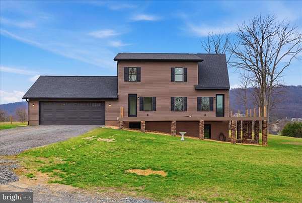 Panoramic Mountain Views Through Floor-to-Ceiling Windows. Nearly completed custom home on 2 private acres just minutes from Gerrardstown, West Virginia, offering over 3,500 sq ft, designer architecture, and the opportunity to move into a finished home with room to expand. The main level will be completed prior to closing and features a spacious primary suite along with open-concept living areas ideal for both everyday living and entertaining. The upper level offers two additional bedrooms and a full bath, providing flexible space for family or guests. Outdoor living is thoughtfully designed with a wraparound deck (will be completed prior to closing) with a striking timber-frame inspired facade, as well as a covered side porch featuring stamped concrete, recessed lighting, and a ceiling fan-perfect for relaxing and enjoying the peaceful surroundings. The walkout lower level already includes a full bath and offers exceptional potential for future expansion-whether for additional living space, recreation, or a private guest suite. Ideally positioned for those seeking a balance of privacy and accessibility, this property presents a compelling opportunity for buyers from surrounding metropolitan areas, including Northern Virginia and Washington, DC, who are looking for a spacious retreat with acreage, modern design, and the ability to add value over time. A rare offering combining a near move-in-ready home, customization potential, and panoramic views-all within reach of major commuter routes.