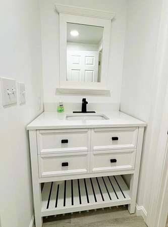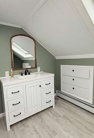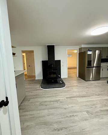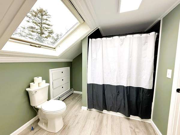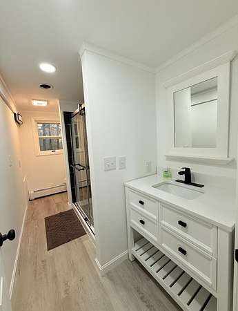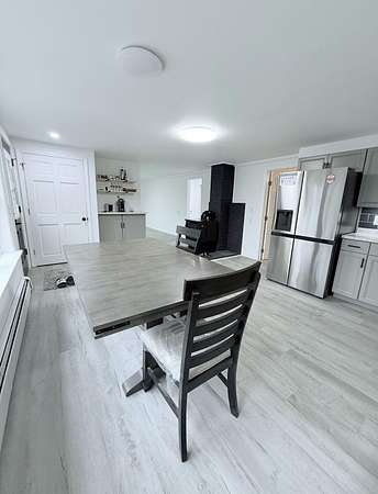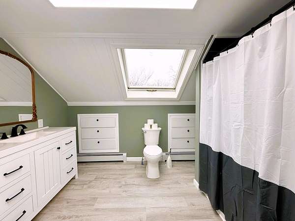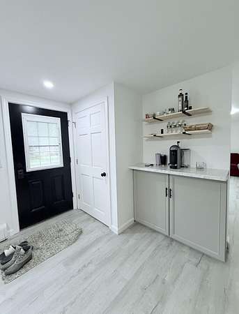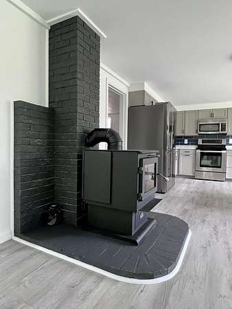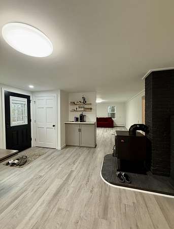 Extensively renovated and full of charm, this beautifully remodeled Cape offers a fresh take on classic style with modern comforts throughout. The heart of the home is a stunning new kitchen featuring tastefully coordinated cabinetry, a sleek tile backsplash, and a dedicated coffee bar area- perfect for indulging your inner barista. New flooring flows through the home, adding to its bright and cheerful atmosphere. The versatile layout offers flexibility for bedrooms, a home office, or hobby spaces to suit your lifestyle. Upstairs, the warmly carpeted second floor showcases a spacious walkout bedroom with exciting potential for a private deck- or use the space as a home office or family room with its own separate entrance. Smart home touches abound, from a lighted kitchen faucet, a bathroom with Bluetooth-enabled ceiling speakers, and three zones of color-adjustable lighting. Updated bathrooms are appointed with fixtures that exude modern elegance. Additional improvements include a new furnace, cozy wood stove, and an oversized patio door that floods the home with natural light. Thoughtfully upgraded and move-in ready, this home is ready to welcome you.