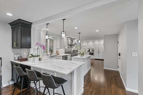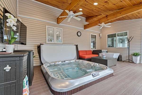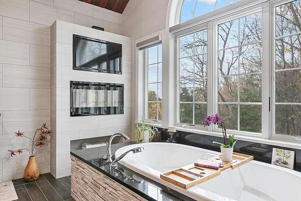 Discover your dream home at 12 Cameron Way, a stunning blend of sophistication, comfort, and resort-style living. This beautifully updated home features exceptional craftsmanship and an outdoor oasis with a heated gunite saltwater pool, waterfall, cabana, & hot tub on a screened-in deck overlooking a private yard. The open-concept main level includes a formal living room, family room with oversized fireplace, and game room. The chef's kitchen boasts quartz countertops, Sub-Zero & Wolf appliances, and custom cabinetry. Upstairs, the luxurious primary suite features a spa-like bath with fireplace, steam shower, and soaking tub, three additional bedrooms, two baths, laundry, and office. The third level offers a private office/lounge, and the finished basement adds a custom built in mudroom off the oversized 3 car garage, gym, TV room, 3/4 bath, laundry, & walkout access. Extras: generator, central vacuum, sprinkler system. Offer Deadline Tuesday, November 18th at 1:00PM.