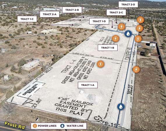 Cauvery Land unfolds across 19.42+/- acres zoned A-2 in the heart of Bernalillo County's East Mountain growth corridor, where demand for larger parcels and flexible development continues to accelerate. As you enter through the fully gated frontage with partial block wall perimeter, a paved internal road guides circulation from the southern ingress/egress point, already establishing the framework for phased neighborhood lot layout. The first lot has electricity piped in, providing immediate operational capability, while water is available at the street for the balance of the tract--minimizing early infrastructure friction and preserving capital efficiency.Just off Frost Road (8,225 VPD) and less than a mile from the San Antonio roundabout, the site sits at a key access node within an