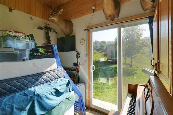 Nestled at 12 Cemetery Hill, discover a unique and charming property that blends rustic allure with modern comfort, offering a lifestyle of sustainability, privacy, and versatile living spaces. The centerpiece of this one-acre haven is a quaint A-frame house. Stepping inside, you'll be greeted by the inviting warmth of a wood stove, which not only adds to the ambiance but efficiently heats the main home. Adding to the appeal are two insulated outbuildings, providing additional living space, bedrooms, or versatile work areas. These spaces are equipped with electric heat, ensuring comfort and convenience, and allowing for various uses to suit your needs. This property stands out with a dual power supply. While connected to the main grid for traditional electricity, it also boasts solar power with on-site battery storage. Furthermore, there's a generator hookup for extra peace of mind during any unforeseen power interruptions. Nature enthusiasts will appreciate the many fruit trees dotting the landscape. The property offers a private, serene setting where you can savor the beauty of the outdoors while relishing the comforts of home. For those with a sense of adventure, this property grants access to neighboring land for recreational use. The property has easy access to the Vast Trail. It's not just a property; it's a lifestyle choice that caters to those seeking a unique and sustainable way of living.