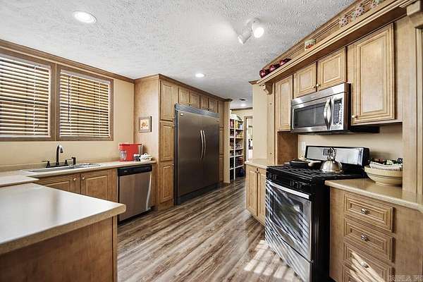If you've been searching for acreage with water, privacy, and real flexibility, this one stands apart. Set on 6 beautiful, usable acres with a year-round creek, this 2015-built home offers a rare blend of modern comfort and true Arkansas outdoor living. The creek is wide, flowing, and deep enough to swim or float, creating a peaceful backdrop you'll enjoy every single day. The 1,759 sq ft home features 2 bedrooms and 1.5 baths, plus a dedicated office that could easily function as a third bedroom if enclosed. The spacious primary suite includes a large walk-in closet, and the kitchen is thoughtfully designed with a tall breakfast bar and built-in refrigerator that conveys. A 24x24 addition adds serious potential, offering space for future bedrooms, a second bathroom, or expanded living area. Outside, a new 16x16 front deck overlooks the property and creek, while a rear wheelchair-accessible ramp adds functionality and ease of access. Wildlife is abundant, privacy is exceptional, and the setting feels worlds away--yet you're still just minutes from town. Properties with land, water, and this level of versatility are increasingly hard to find. This one delivers all three.