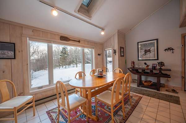 This one won't last long! Beautifully maintained chalet in the Dover Hills, on a 2 acre parcel, just a short drive from the Mount Snow ski resort. The current owners have taken care to keep the original charm of this home while updating consistently to allow for minimal maintenance and easy enjoyment. Off easy paved access, this home sits on a level parcel with ample parking, storage shed, wraparound entertaining deck which leads to the unique tennis court, cand a lovely lawn space without having too much to maintain. Inside you are treated to a gorgeous vaulted great room with rustic woodwork, a wood burning fireplace with stone surround, large kitchen with island and spacious dining area off the convenient mudroom for gear storage, and great natural light throughout thanks to large windows. The main floor has two ample sized bedrooms and a full bath. Upstairs is a large primary suite with shower and soaking tub, which serves as a jack and jill bath for the large fourth bedroom. There is a full finished lower level walkout family room space with ping pong and tv areas, third full bath, bonus bedroom which does not have legal egress sized windows, and a spacious sauna. Recent upgrades include many new windows and sliding door, a new firebox and chimney chase, rebuilt deck, ceiling insulation, and more. Enjoy winter views of the ski slopes out your front windows and easy snowmobile trail access.
