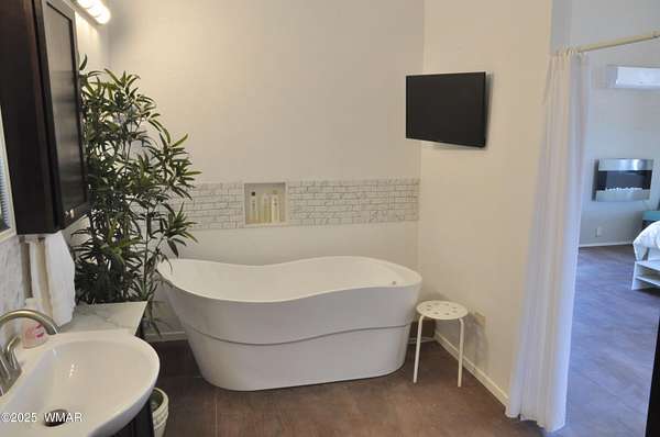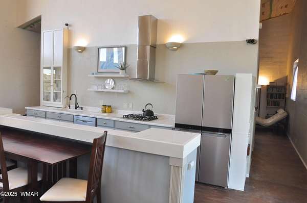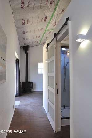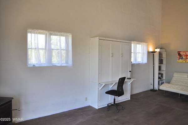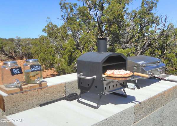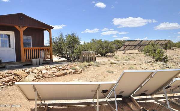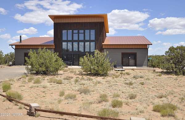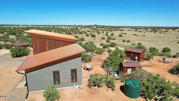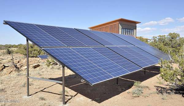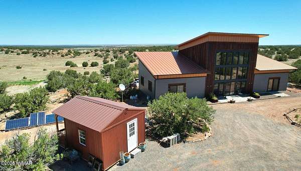 You've just discovered one of the treasures of the planet - this fantastic home - surrounded by 63 beautiful treed ac, a seasonal stream & waterfall, all the freedom & peacefulness of off-grid living, AND an established income opportunity. But even rarer, it is electrosmog & pollution free, built for healthy living utilizing non-toxic building materials. The utmost time, deliberation, & research went into developing this health conscious, energy efficient, self-sufficient property & it just keeps getting better - now back on the market after substantial further completion (& expense NOT being passed on to buyer). Every aspect of the home has been professionally engineered to offer maximum energy efficiency, from its custom Jeldwen windows, positioned for max passive heat/cooling, (cont... to its 12" thick Insulated Concrete Form (ICF) block walls & ample solar system designed to meet all power needs, w/plentiful lithium battery storage & dual fuel generator backup, and much more. Flexible floorplan is designed to offer 2 to 4 bedrooms as you wish, each w/separate entrance. Building materials, construction tools & furniture to convey. All this on 63 private acres fully fenced w/4 gates. 21 ac has been split into four 5 ac parcels, designed as an income producing electrosmog-free camping/respite featuring separate gated access, beauty, spaciousness & privacy. Mailing list of several hundred is included. County issued special use permit for 12 self-contained RVs, $20/night, Spring through Fall. However permit parameters of your own choosing can also be requested. 3 high quality Graceland out-buildings, each w/covered sitting porch for enjoying the fabulous views; a 16' x 16' studio or guest bunkhouse; an 8' x 12' pumphouse housing the whole house water filter system; a 16' x 13' workshop housing the solar electrical power system. 2 story 16 x 20 shed w/loft @ south entrance & passing perk test in this area. The goal was to build this home "the way houses should be built"...prioritizing health, quality living, aesthetic pleasure, high performance building materials, self-sustainability, low maintenance & energy costs. Completely self sustaining water & power utilities. Such as (free) Atmospheric Water Generation and rain catchment capacity of 22,000 gallons per year from its non-toxic metal roof, in addition to excellent hauled water backup from the Coconino Aquifer. Worth noting ... this acreage sits over this same highly reputed aquifer, for a sure hit into good, abundant water if a well is desired. Plentiful passive solar heating is built into the design along with multiple (free) alternate heating sources: heat/air conditioning mini-splits, solar powered electric fireplace, a woodstove to take advantage of bonus heating from the fallen wood on the property, in addition to a high BTU Heatilator propane fireplace backup. Plus, with your outdoor kitchen you can enjoy cooking gourmet meals (free) in your solar oven, or your propane BBQ grill or pizza oven, and then enjoy outdoor dining w/forever views. While your home takes care of all your modern comforts, you can relax to the soothing rhythms of Nature enjoying spectacular moonrises and sunsets from your scenic point overlooking your charming seasonal stream and waterfall; or watching the majestic resident Horned Owl give its babies flight lessons; or simply cuddling up by your cozy fireplace to marvel at the breathtaking sky-scapes and vast starry night skies beyond your 30' livingroom window wall. More details about the pleasures of living in this special home, and the income potential of "doing well while you do good" by offering an Electrosmog refuge to a needful world, are found under documents tab. Sellers are generously offering a $25,000 buyer credit towards house finishings of your choice at close of escrow.