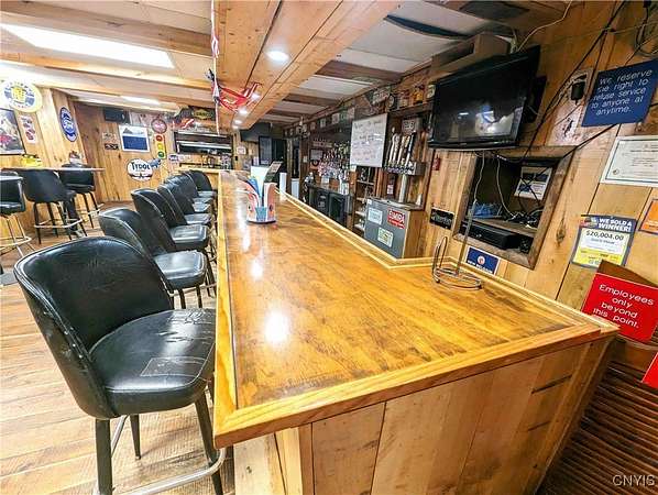 Excellent investment opportunity located in Lindley NY, Steuben County. This unique commercial property offers a rare combination of reliable income and business potential, ideally located on a busy county road just north of the Pennsylvania border and 15 miles south of Corning, NY. The property's strongest income source includes four newly renovated apartments, all currently leased and producing consistent monthly revenue. The self-storage component includes two newer steel buildings housing a total of 37 units in a variety of sizes ranging from 5 x 10 to 10 x 30, as well as six additional 9.5 x 17.5 units in a traditional wooden barn. With high visibility and easy access, these storage units offer dependable income with low maintenance needs. Above the main commercial building are four fully remodeled apartments-an efficiency unit, a one-bedroom, and two two-bedroom apartments-bringing in a total of $4,450 per month in rental income. A newly installed, county-approved septic system services the building. The main structure, encompassing over 5,800 square feet, previously operated as The Lindley Roadhouse, a popular bar and restaurant. The first floor features a large, open dining area with wood floors, booth and table seating, and space for a pool table. A partial wall separates the dining room from a cozy bar area with seating for 10, while the adjacent commercial kitchen is fully equipped and ready for use. All equipment conveys with the sale. Additional features include a private office, guest restrooms, and a large, covered deck for outdoor seating in the warmer months. Even though this main structure was most recently a restaurant and bar, this commercial space could easily be adapted for any commercial endeavor. This property presents a turn-key opportunity for investors seeking diversified income or entrepreneurs looking to run or lease a commercial restaurant space. With multiple revenue streams in place and the potential for further development, this is a truly versatile property in a highly accessible location near the state line.