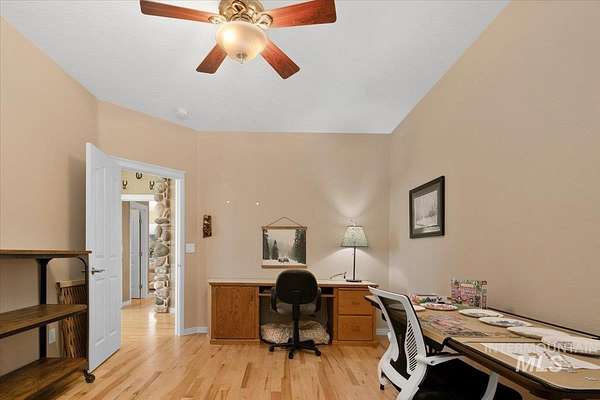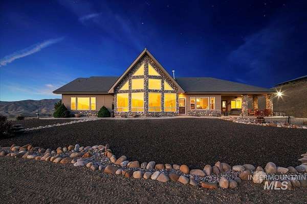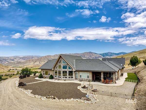 Discover an unparalleled luxurious country lifestyle on this 24.55-acre equestrian's dream, dog agility or sports training property. This custom-designed 2,750 sq. ft. home w/breathtaking views, sweeping 180 degrees views of the Payette River & Horseshoe Bend Valley, showcased by a vaulted great room w/floor-to-ceiling windows. The open-concept interior features beautiful maple hardwood & ceramic floors, a gourmet kitchen & a primary suite w/dual closets & a new spa-inspired shower. Outdoor living is equally inviting, w/a covered patio, hard-wired indoor/outdoor stereo, a regulation-size horseshoe pit & even a pistol shooting range. Equestrian/dog agility enthusiasts will appreciate the 60'x180' barn, complete w/a screened indoor riding arena, six matted stalls, a heated tack room, indoor hay storage, a 1,000-gallon water tank & 20'x60' indoor RV parking. Multiple fully fenced & gated pastures. 2,032 sq. ft. heated, insulated garage/shop has ample space for all vehicles & toys. Smart-home upgrades include Generac generator, new HVAC, gas fireplace, tankless water heater, RO system, water softener, appliances & Andersen storm doors w/rollaway screens, all Alexa-enabled for convenience. Minutes from the Payette River, state forest land, trails & Black Canyon Reservoir, this property offers unmatched recreation. Subdivide into four five-acre lots, the opportunities are endless.