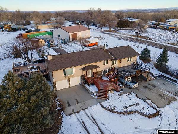 Welcome to 12 Darnall Road, a property that truly has it all--space, amenities, and the lifestyle. This spacious 4-bedroom, 2-bath home offers over 3,700 sq ft of well-designed living space. Inside, you'll find a true chef's kitchen with granite countertops, premium Cafe appliances, extensive cabinetry, and an ideal layout for cooking and gathering. The kitchen opens into the living room, which features vaulted ceilings and natural light. A large primary bedroom offers relaxation and convenience with direct access to the deck, which is perfect for morning coffee and evening sunsets. The pellet stove in the lower-level family room creates a warm, inviting atmosphere, and you are sure to appreciate the convenience of the walk-out basement. The floor plan of this home allows flexibility for your way of life. Set on 4.51 irrigated acres, this property offers space, land, and opportunity. The acreage is well-suited for horses or livestock with room to fence, graze, ride, or expand. A seasonal pond adds charm and creates a peaceful setting in the summer months. The 48x40 insulated and finished shop is large enough for equipment, trailers, boats, or vehicles, as well as woodworking or mechanic projects. Relax on the deck and watch the sun settle behind breathtaking mountain views, or spend summer evenings walking the property, relaxing by the pond, or sipping coffee while the horses graze nearby. With irrigation rights, maintaining pasture or gardening becomes easy and productive. Whether you're looking for hobby farming, space for animals, or a place to breathe and spread out, this property delivers! Just minutes from town, you'll enjoy modern convenience without sacrificing tranquility, privacy, or open landscape. Contact Brooke McWilliams with Wind River Realty at 307-349-1770 to schedule a private showing!