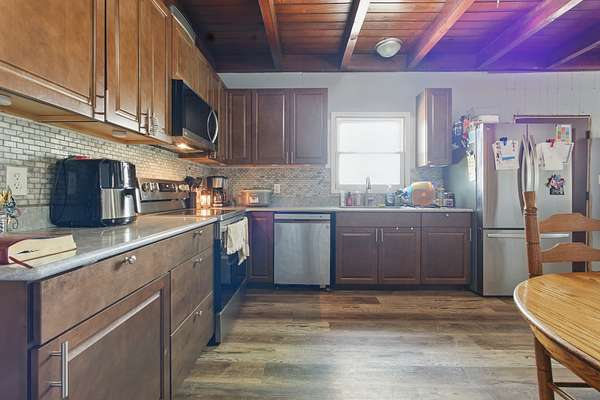 Est $1,316/moThe possibilities are endless with this beautiful country home. Open beam ceilings in the living area, newly renovated kitchen with stainless appliances and quartz countertops, and new windows are only the beginning of the updates that have recently been done. This home has ample space to include 3 bedrooms as well as an additional flex room that is currently being used as a 4th bedroom. Home still lacks some updates..ideal for someone wanting to make the final renovations themselves or an investor. Bring your ideas! Included is a single wide mobile home that could be used as a future building site.