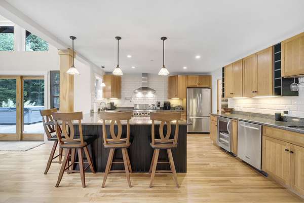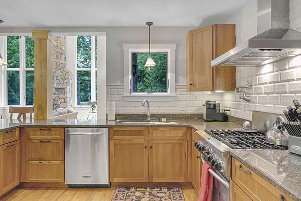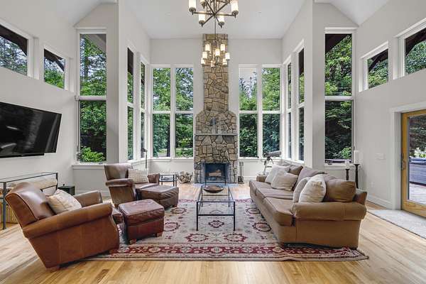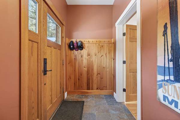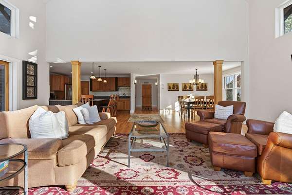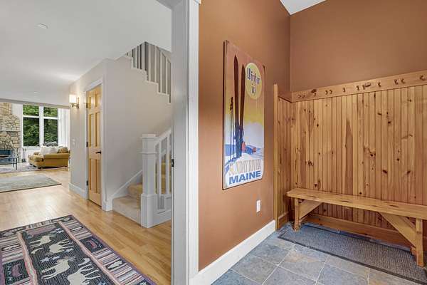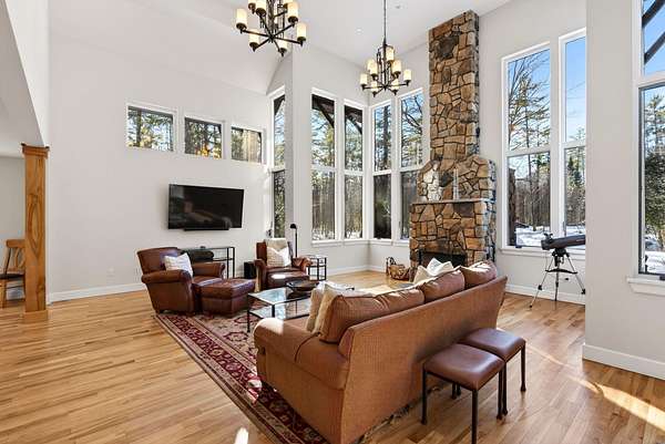 is inviting and unique chalet is beautifully sited on a private lot in the desirable Colony neighborhood. The custom home features 5 bedrooms and 4.5 bathrooms, including a primary suite on the main floor and two additional suites on the upper floor. An open floor plan includes a spacious kitchen complete with walk-in pantry, six-burner gas range, two dishwashers, two sinks and a beverage center. A soaring masonry fireplace anchors the great room, and the wood-burning fireplace is duplicated on the exterior of the home for outside enjoyment. Walls of windows provide a delightful forested/treehouse feel in the summer months and fantastic views of White Heat and Locke Mountain in the winter months. The entire first floor enjoys radiant heat. The outdoor area also features a deck with a large hot tub to enjoy aprA?s ski with south/southwest afternoon sun. A detached, oversized two-car garage provides additional storage on a second level. The home is being sold fully furnished and this listing also includes an adjacent, separately deeded, buildable lot. The Colony neighborhood provides the best of mountain living with close proximity to the resort via a private road that leads to the base of South Ridge, and an on-call shuttle for Colony owners and their guests on weekends and holidays assures easy access to and from the trails (the only neighborhood in the Sunday River resort community to do so!). Owners and guests can enjoy walks in the neighborhood with their canine companions, or hikes and snowshoe adventures on the wooded trails that are accessible from the development. Colony owners also enjoy deeded access to the Sunday River across the street, in addition to proximity to the nearby, highly acclaimed Sunday River Golf Club. This offering provides Sunday River Living at its finest.