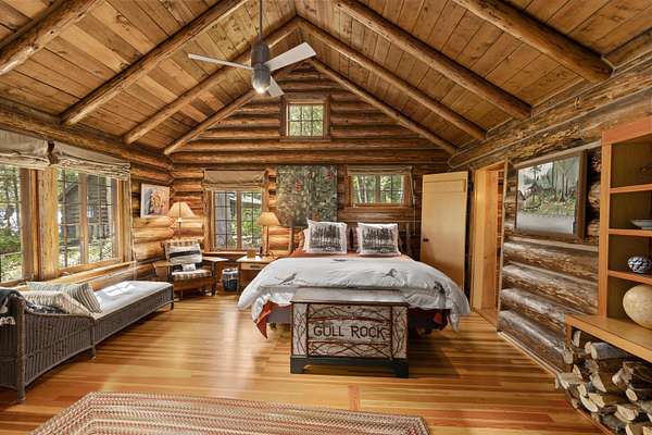 GULL ROCK CAMP (c. 1902) is perhaps the finest, classic Adirondack Great Camp on Lake Placid Lake. The limited public access to this pristine, clear, mountain lake and the private retreats around it - many boat access only - makes it a more exclusive location than one might imagine of a body of water named for such a prominent Olympic village. Originally designed in 1906 by architect Max Westhoff for Theodore Ely, the 16,000+/- sq. ft camp features a collection of purpose-built cabins, including a living cabin, dining room, guest quarters, and boathouses. Painstakingly restored in 1994 by its current owner, the property now includes 11 historic structures and a separate mainland parcel with a large, amenity-rich boathouse and ample parking. The camp offers direct access to village amenities, private hiking trails, and the vast wilderness of the Adirondack Park. Its location also provides convenient access to regional and international airports in Albany, Burlington, and Montreal.