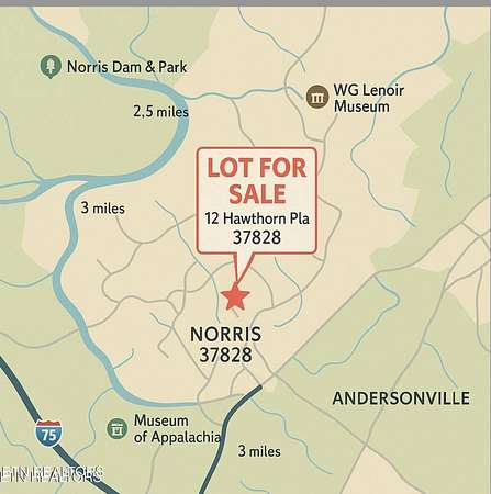 Build Your Dream Home in Charming Norris, Tennessee? Norris offers a peaceful suburban lifestyle with a rich history and a close-knit community. With a population of just 1,600 (as of 2025), this charming town is surrounded by natural beauty, creating a serene environment that feels worlds away yet is conveniently close to modern amenities. This wooded 1.58-acre lot sits at the end of a quiet cul-de-sac in the desirable Norris Woods neighborhood, surrounded by custom-built homes. With 197 feet of road frontage and a gradual slope ideal for a basement foundation, this property accommodates a wide range of home designs. Backed by TVA land, the lot offers privacy and direct access to nature. Just down the street, enjoy the Eagle Trail, which winds through 2,300 acres of the Norris Watershed with over 30 miles of multi-use trails for hiking, biking, and exploring. The trails connect to the town's community center, complete with tennis courts, disc golf, pickleball, and a playground. Living in Norris also means easy access to the Clinch River and beautiful Norris Lake, both renowned for their crystal-clear waters, boating, and fishing. Stroll to the historic town center and area schools, or enjoy the small-town charm that makes Norris one of East Tennessee's most unique communities. Conveniently located minutes to I-75, just 20 minutes to Knoxville, and 35 minutes to McGhee Tyson Airport, this lot blends tranquility with accessibility. Whether you're relocating, retiring, or building your forever home, this is a rare opportunity to own a piece of Norris and enjoy the lifestyle you've always envisioned.