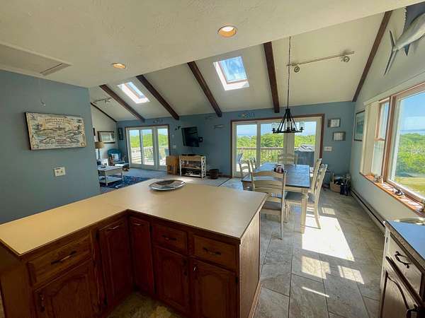 Est $9,990/mo12 Lobsterville Rd in Aquinnah is a uniquely designed contemporary home set on 2.6 acres of lush grounds with large tracts of conservation land nearby. Open concept living, dining, kitchen on the second floor with unobstructed ocean views of Vineyard Sound. Spacious deck for sunset viewing and grassy lawn for sundown games. Walking distance to Lobsterville Beach and a short bike ride to the lighthouse.