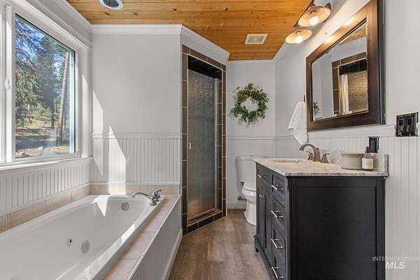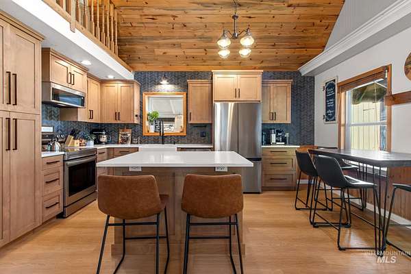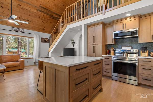 Step inside this beautifully updated 3-bedroom, 2-bath Cabin that perfectly blends comfort, function, and modern style. Remodeled throughout, you'll love the stunning new kitchen featuring quartz countertops, soft-close drawers, and a stunning modern tile backsplash that extends from the counters to the ceiling, adding a touch of sophistication and craftsmanship that elevates the entire space. Updated flooring flow seamlessly through the home, giving it a bright, refreshed feel. Outside, you'll find the fully covered porch that offers the perfect spot to relax year-round-enjoy shade in the summer and shelter from the snow in the winter. The spacious yard is a true outdoor haven, surrounded by mature pines for privacy and natural beauty. The fire pit area is perfect for bonfires and gatherings with friends and family, while the leveled lower yard provides an ideal spot for a playground, garden, or your own custom setup. A fully fenced dog area ensures your four-legged family members have their own safe space, too! the insulated shop offers plenty of room for projects, tools, and toys. The expansive driveway provides ample parking for guests, RVs, or trailers - plus, a convenient road wraps behind the shop leading to a dedicated area perfect for parking side-by-sides or other outdoor vehicles. Idaho living - peaceful, private, and perfectly set up for both relaxation and recreation.