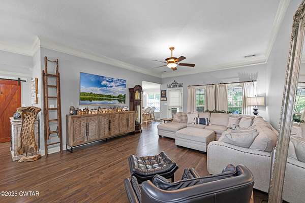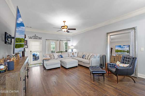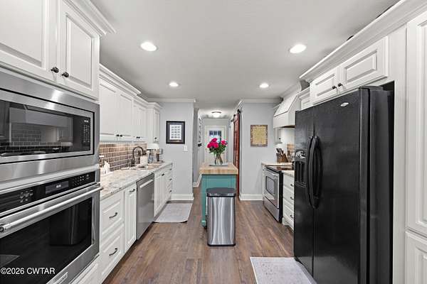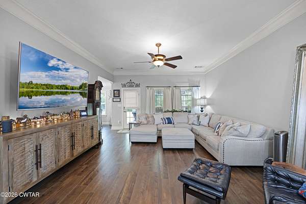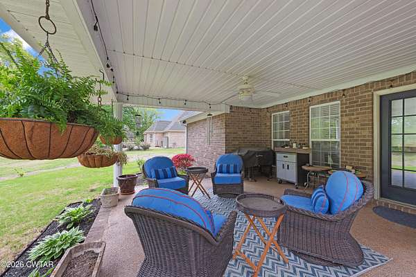 Beautiful 4 bedroom, 3 bathroom brick home situated on a spacious 2 acre lot just outside the city limits of Milan, TN with no city taxes. This well-maintained home offers approximately 2,322 heated square feet and features a great room and dining room combo with hardwood flooring and beautiful crown molding. The eat-in kitchen is well equipped with granite countertops, tile backsplash, kitchen island, stainless steel appliances, built-in microwave, built-in oven, and an additional range with oven. A cozy hearth room provides an inviting seating area with gas logs. The primary bedroom suite features hardwood flooring, a sitting area, double separate vanities, tile shower, garden tub, and double walk-in closets. Upstairs offers 2 bedrooms, including one large enough to serve as a bonus room, 1 bathroom, and a spacious floored attic. The home is also equipped with two hot water heaters for added convenience. Recent upgrades include all new interior paint in 2024, new driveway and walkways in 2025, added burning bushes in 2025, new brick mailbox in 2025 to match the home, and new ceiling lights and ceiling fans in 2025. Exterior features include attractive landscaping beds, covered back patio, additional patio/grilling porch, attached double car garage, brick outbuilding with roll-up door, greenhouse with heater and A/C unit, and a new flagpole installed in 2025. Conveniently located between Milan and Medina with a short commute to North Jackson and easy access to dining, shopping, and banking. This is one you do not want to miss.