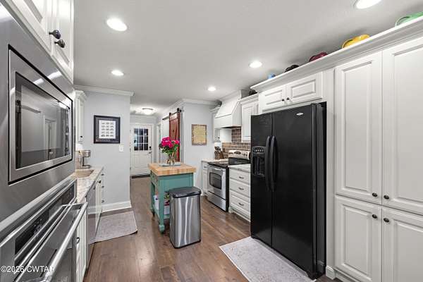 - Dishwasher, Down Draft, Electric Range, Electric Water Heater, Gas Water Heater, Microwave, Refrigerator, Self Cleaning Oven, Stainless Steel Appliance(s)