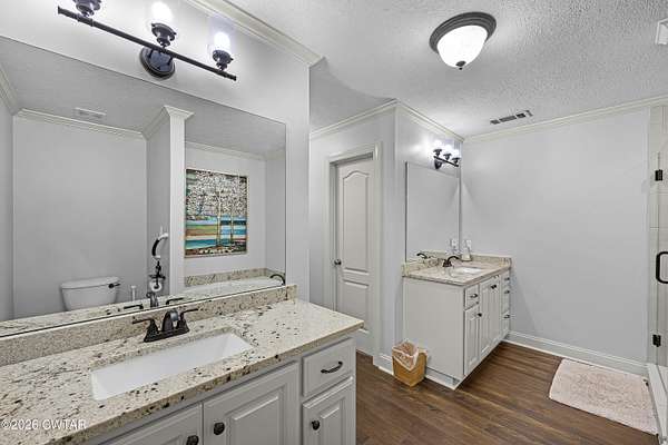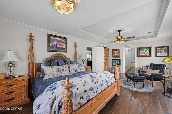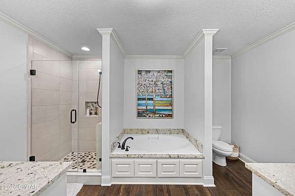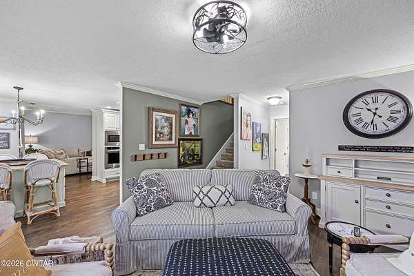 - Blown/Textured Ceilings, Ceiling Fan(s), Ceramic Tile Shower, Eat-In Kitchen, Granite Counters, High Ceilings, Kitchen Island, Tray Ceiling(s), Tub Shower Combo, Walk-In Closet(s)