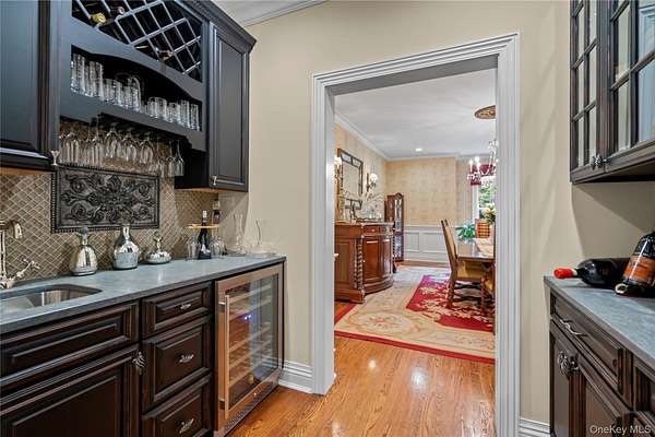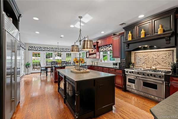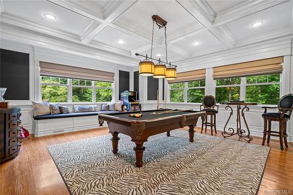 Hydrangea House- A luxurious retreat offers the perfect blend of elegance and luxury living. With exclusive access to Lattingtown Harbor Beach and Clubhouse, enjoy all the amenities of boating, community gatherings, fishing, kayaking, swimming and a floating dock, just minutes from your front door. Spanning 6,751 sq. ft., this 10-room grand home is designed for both entertaining and peaceful living. From the moment you step inside, you'll be greeted by an arched mahogany entry door and sun-lit foyer, exquisite paneling and crown molding showcases impeccable architectural design. Every room has been thoughtfully designed with custom lighting fixtures, built-ins, window treatments, speakers, tv's, all of which stay with the home, further enhancing its timeless charm. Rich solid oak floors run throughout, complemented by detailed custom millwork and a stunning billiards room with a coffered ceiling, built-in speakers, custom leather wall coverings, a built-in window bench with storage, adding both beauty and function. The butler's pantry comes complete with a Frankie sink, a wine cooler, and custom dark wood cabinetry-ideal for entertaining which adjoins the formal dining room. The chef's kitchen is a masterpiece, with stainless steel appliances, a six-burner Viking grill cooktop range with double ovens below, and a commercial-grade hood. Granite countertops, a sandstone island, large walk-in pantry, and extensive two-tone cabinetry elevate the space. Three sets of French doors lead to a large mahogany deck, perfect for outdoor dining and relaxation. The great room off the kitchen is equally impressive, featuring a wood-burning fireplace with access to the deck through French doors, creating a seamless indoor-outdoor flow. On the first floor, a private den/home office, is separate from a guest room with double closets, The ensuite bath is elegantly finished with subway tile and beadboard. An attached two-car garage with high ceilings may accommodate a lift. Upstairs, the main suite offers stunning garden and pool views, a gas fireplace, and an oversized walk-in closet with custom shelving. The luxurious ensuite bath features a Jacuzzi tub, tumbled marble, and French limestone floors, along with an oversized walk-in shower. Three additional bedrooms-two which share a bath, the bonus room off the rear stairs, past the laundry, hall bath and linen closet, offers versatile living space, perfect as a fifth bedroom or second home office, includes a walk-in closet. The unfinished basement boasts high ceilings and is equipped with a French drain, a central vacuum system, and the infrastructure for additional customization. A Generac generator powered by a propane tank is useful; five zones of oil heat with 550-gallon capacity. Just five minutes from the charming village of Locust Valley, you'll enjoy easy access to local shops, restaurants, a library, a shoemaker, a cleaners, the post office, and nearby golf and country clubs. Experience the best of both worlds-seclusion and convenience-at Hydrangea House. Association Dues: $3,882.64 per year. View 3D tour and floor plan.
