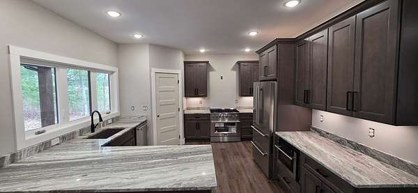 Built for the buyer who values above-average construction and energy efficiency on 3.5 ACRES. -LOW UTILITY BILLS- LOW MAINTENANCE! GAS APPLIANCES with 6 Burner Range, TANKLESS HOT WATER - SPRAY FOAM INSULATION WALLS & OVERHEAD- ENCAPSULATED CRAWL SPACE, -PELLA WINDOWS- METAL ROOF & COMPOSITE INSULATED SIDING. Perfectly positioned on LEVEL Cul-de-sac lot, this home offers 2030 sq ft of finished living space and just over 4,000 sq ft under roof-all on ONE LEVEL! OVERSIZED GARAGE Boasts 1116 sq ft and offers room for large pick up trucks with plenty of space left to navigate and have room for tools, and storage. Mechanical room is under heat and air and located in garage . Across the front of home is 448 Sq ft Covered Porch and at back of the home, you'll enjoy 534 sq ft of COVERED CONCRETE PORCHES with wood stained TONGUE AND GROOVE CEILINGS ideal for outdoor living and entertaining. Inside, the upgraded kitchen features custom wood cabinetry with abundant drawers, a 36 INCH GAS RANGE,