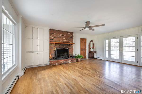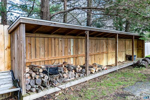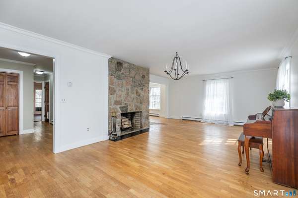 Tucked away on a quiet cul-de-sac just 1/2 mile from the New York state line, this home offers an appealing blend of privacy and convenience on two level acres in a tranquil, natural setting. The main level features generously sized rooms, including an eat-in kitchen with sliders to an exterior deck - ideal for indoor-outdoor living. The dining room and family room flank the kitchen, with the family room offering a cozy fireplace and leading to an expansive 26' living room with a striking stone fireplace. Bright spacious interiors create inviting spaces for both everyday living and entertaining. A welcoming foyer, full bath, and combined laundry/mudroom complete the main level. Upstairs, the primary bedroom suite is accompanied by three additional bedrooms, providing ample space for family and guests. Hardwood floors and abundant natural light on the inside, and mature specimen trees and plantings on the outside, enhance the home's appeal. While the home might benefit from updates, its exceptional floor plan, peaceful setting, and prime location offer tremendous upside potential. Sherman residents enjoy access to a town park with tennis courts, jogging track, playground, and beach on Candlewood Lake. Conveniently located just 90 minutes from Manhattan and minutes to the train, this home offers the perfect balance of country charm and commuter accessibility. Subject to probate approval and offered in "as is" condition. A wonderful opportunity to make it your own.