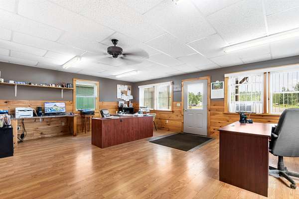 5.5 acres in Clarksville with a great opportunity and 640 feet of frontage on the Connecticut River. Newly built in 2010 is a 38x84 garage with 16 x14 foot commercial automatic doors, concrete floor with pit, storage parts room, 1/2 bath with room for a shower, wood stove and a waste fuel heater. The building is also plumbed with an air compressor, welding capability and so much more. There is also an office building with 1/2 bath that could be converted into a cabin for living space. Snowmobile trail access across the street and just minutes to the ATV trails. Possible owner financing available. Come and take a look at this property today.