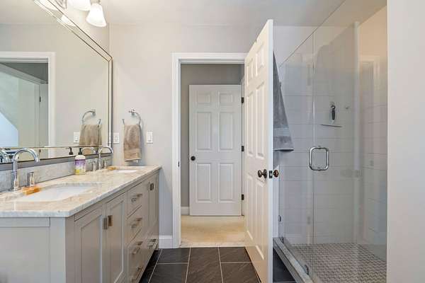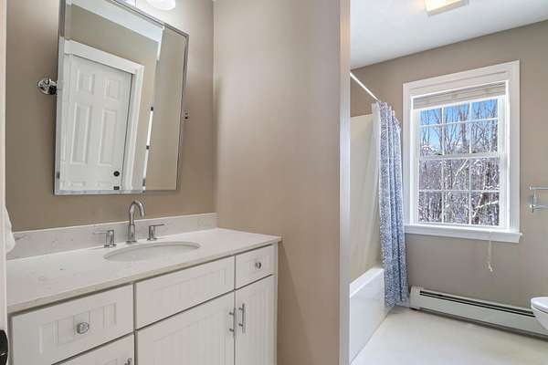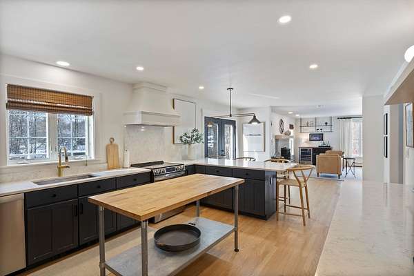 Welcome to 12 Runaway Road, an exceptional, extensively updated residence in the highly sought-after Newfields community. Located within the desirable Newfields Elementary and SAU 16 school district. Built in 2002 and thoughtfully enhanced throughout, this move-in ready home offers refined finishes, flexible living space, and a standout outdoor setting. A designer-led first-floor renovation completed in 2022 brings a cohesive, high-end feel to the main living space. The custom kitchen features designer cabinetry, quartz countertops, a statement range hood, and built-in beverage refrigerator, all opening into a front-to-back living room that feels airy and bright with its generous scale. This is where the custom bar area was thoughtfully added, creating a natural space for gathering and entertaining. New hardwood flooring runs throughout the first floor and continues into the second-floor hallway. A private first-floor home office with custom woodwork offers the perfect work-from-home setup or quiet retreat. The second floor offers three generously sized bedrooms, a large shared bathroom, and a spacious primary suite with two custom closets and a three-piece bath. The walk-out lower level adds everyday functionality with a full mudroom, custom built-ins, and flexible finished space ideal for a playroom, gym, or home office. The walk-up attic, with a full staircase, high ceilings, and large windows, offers excellent potential for future expansion. Outside, a Trex deck with cable railings extends off the home, while the fully fenced in-ground pool is set to the side with multi-level decking, designed for easy summer living with added privacy. Additional updates include new garage doors (2025), irrigation system with new Hunter control system (2025), radon mitigation system (2025), and hot water heater (2021). A rare opportunity to own a truly turnkey home in one of the Seacoast’s most desirable communities! Showings begin 3/25/26